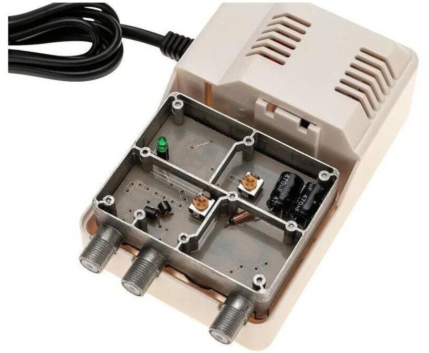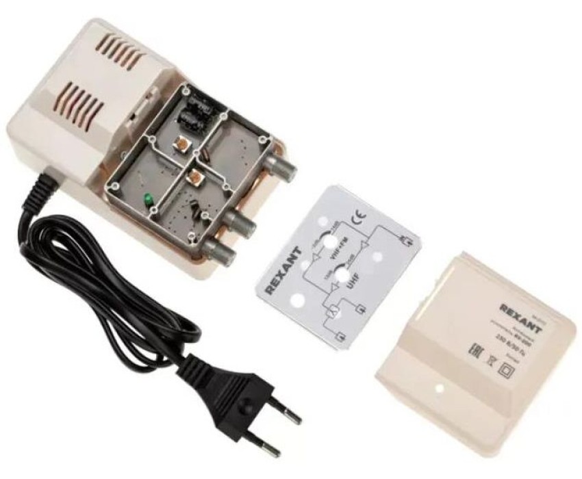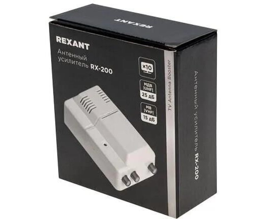 Антенный усилитель RX-200 предназначен для усиления цифрового эфирного сигнала в стандарте DVB-T2 в диапазоне частот 47…862 МГц. Позволяет развести ТВ сигнал, принимаемый от одной антенны, на 2 выхода, к которым можно подключить два DVB-T2 приемника/два телевизора. При дополнительном применении делителей ТВ сигнала можно расширить возможность подключения до 10 устройств Корпус антенного усилителя выполнен из ударопрочного АБС-пластика.