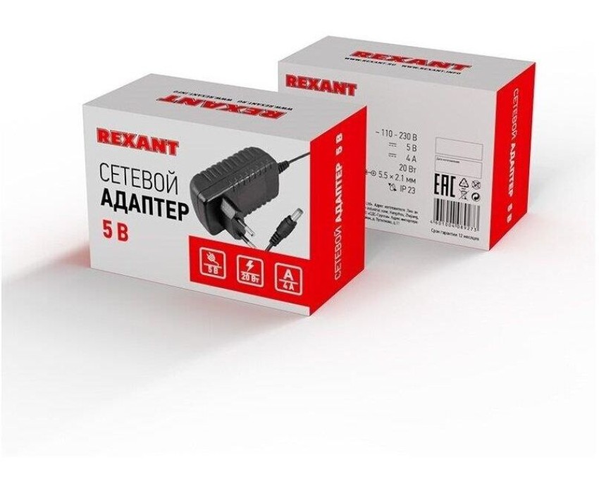 Блок питания REXANT (200-036-5) AC 110-250В/DC 5В, 4А, 20Вт