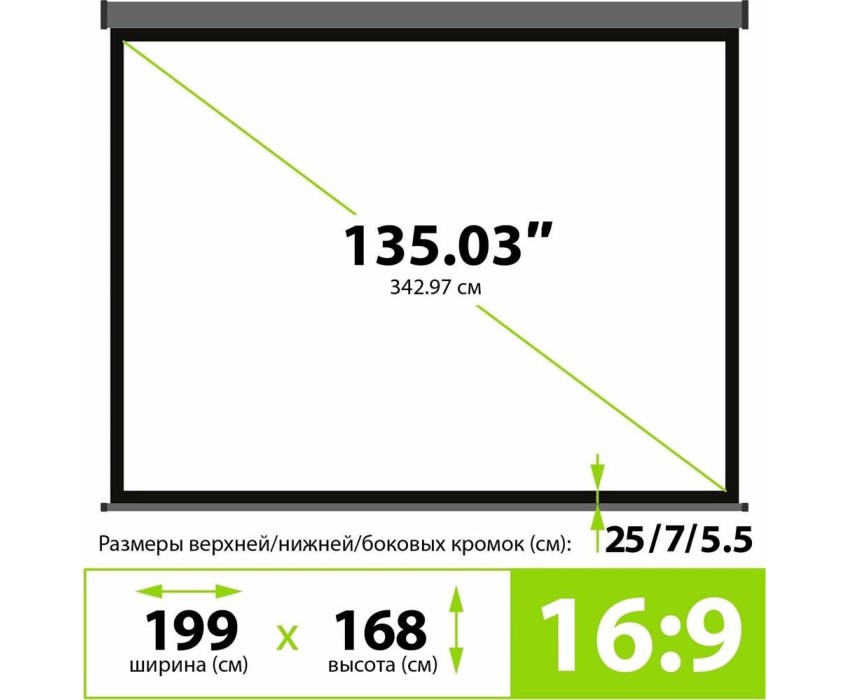 Настенно-потолочный настенно-потолочный (150 см x 130 см) • Рабочая область: 135" (16:9 ) • без привода
