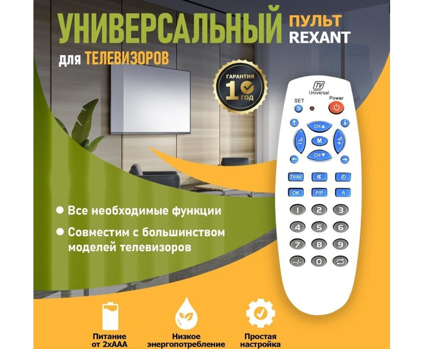 Универсальный пульт для ТВ, отличается простотой в использовании и совместим с большинством марок и моделей современных телевизоров. Универсальный пульт поддерживает такие функции, как: меню, настройки, стандартные настройки, субтитры, канал, громкость, язык и т. д., что обеспечивает максимально полное и удобное управление телевизором. Имеет низкое энергопотребление, удобен и прост в настройке.