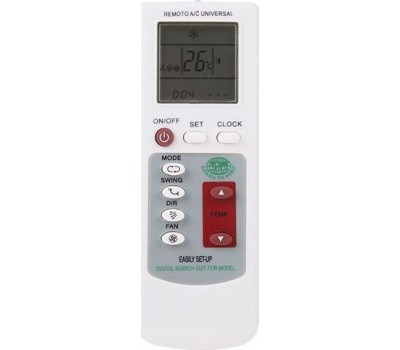 Пульт универсальный для кондиционеров, подходит к более 1000 моделей кондиционеров различных кондиционеров. Совместим со следующими моделями: GREE , CARRLE, MIDEA, TOSHIBA, LANBO, CHANGHONG, FRESTECH, CHIGO, MACQUAY, PANASONIC, HUIFENG, HAIER, NANF, MITSUBISHI, DAYU, ALANZ,SAST, KELONG,HUABAO, SHENGFENG AUX , YAIR, SHARP,SHENGBAO, WANBO, DAIKIN, POLKA, HISENSE, TIANYUAN, FUSHITONG, TOBO, HUALING, FEILU, LG. XIAOYA, HITACHI, DEER, TCL, LIANGYU, SANYO, LITTLE SWAN, WHIRPOOL, SUOWA ROWA , LANGGE, ELECTROLUX, CROWN, YORK, ZHONGLI, AUOMA, TALANDI, CHUNLAN, WUFFENG XINKE ,SAMSUNG и др.