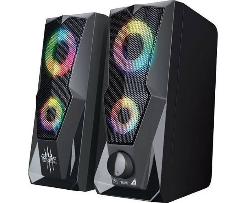 Акустическая система с RGB подсветкой, чувствительность 650 мВ ± 50мВ, питание USB 5 В, частота 160 -20 000 Гц, интерфейс подключения - USB разъем + 3.5 stereo jack, размер - 78*99*175 мм.