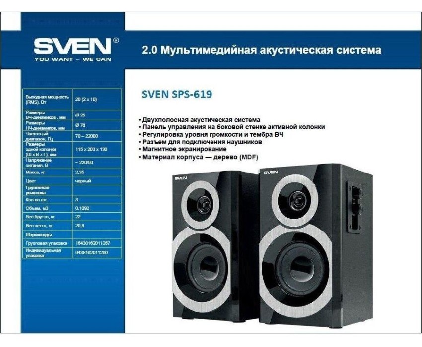 Акустика SVEN SPS-619 черный/серебро