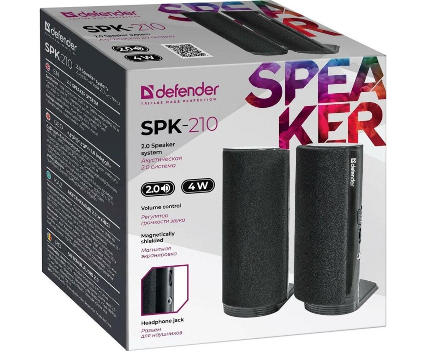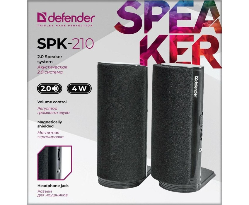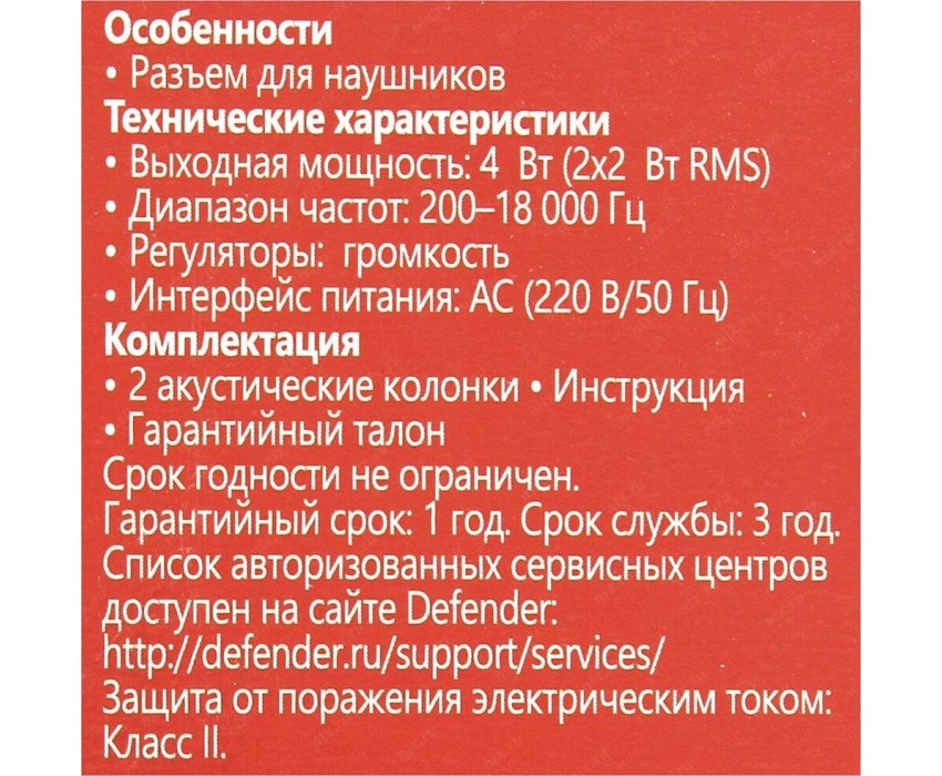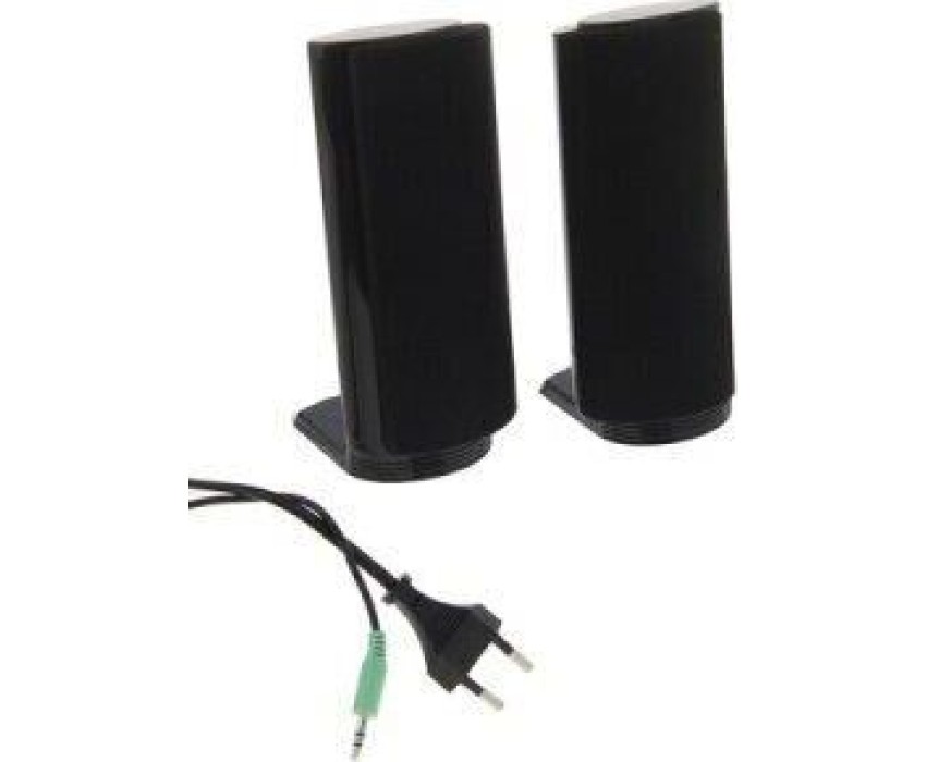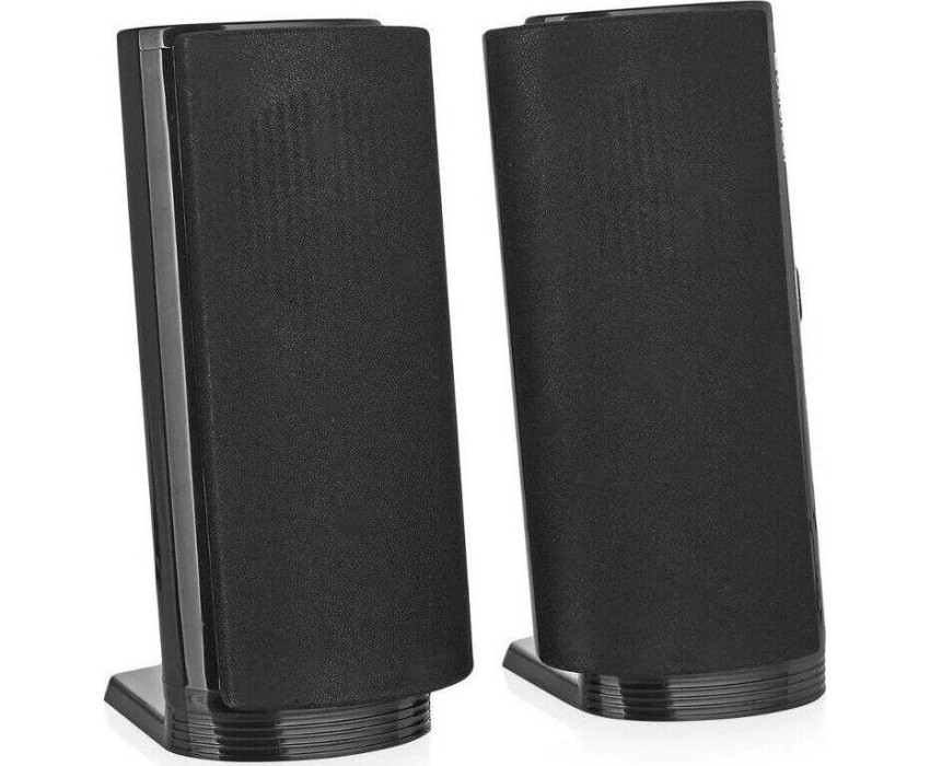 Акустическая 2.0 система, 4 Вт, диапазон частот 200 - 18000 Гц,, размер динамиков 2х2,5 "0, тип интерфейса - 3,5-мм джек, материал корпуса - пластик, длина кабеля 1.35 м.