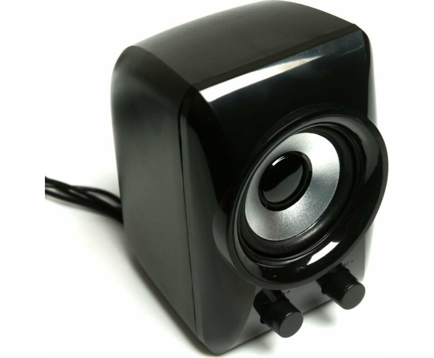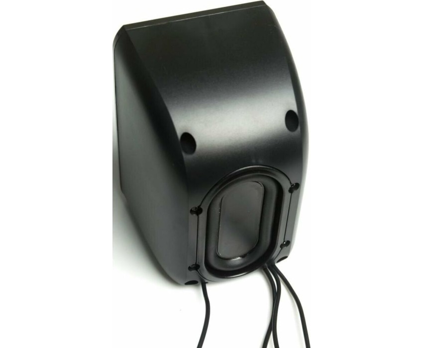 Мощность RMS 11(Вт), встроенный усилитель, стереовход (джек 3.5 мм), сабвуфер 2,4", мощность 5Вт, сателиты 1,8", мощность 3Вт, габаритные размеры (В*Ш*Г) мм: 55*70*62, цвет: черный.