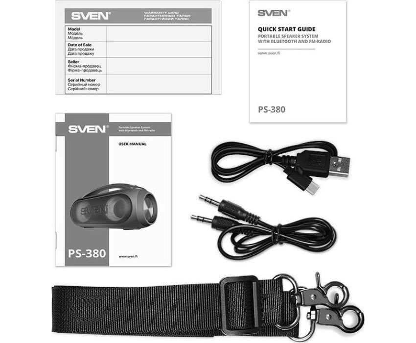 Выходная мощность (RMS), Вт 40 (2х20), Частотный диапазон, Гц 60 – 20 000, Диапазон частот тюнера, МГц 87.5 – 108, Размеры динамиков, мм 70 + 47, Беспроводная передача сигнала по Bluetooth, Воспроизведение музыки с носителей памяти USB, Источник питания литий-ионный aккумулятор: 3000 мA · час USB: DC 5 V, Номинальный ток потребления, А 0,58, Тип соединения Bluetooth, проводной, Радиус действия, м до 10, Размеры изделия (ШхВхГ), мм 360х180х135 Вес, г 2300, Цвет черный