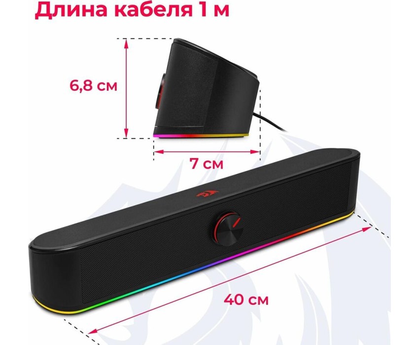 Цвет: черный | Особенности: Глубокий мощный звук в компактном дизайне и красивая светодиодная подсветка! Экономит место и украшает ваше рабочее пространство. Выбор режима подсветки осуществляется касанием логотипа Redragon. | Модель: ADIEMUS | Ширина, мм: 110 | Высота, мм: 105 | Глубина, мм: 108 | Диапазон частот: 150–20 000 Гц | Управление: механическое | Наличие подсветки: да | Объем, м3: 0.0046 | Вес, кг: 0.89 | Размеры (ШхВхГ): 400 х 68 х 70 мм | Тип электропитания: от USB |