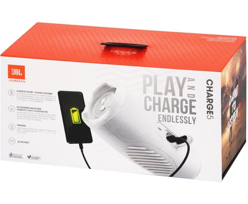 Колонка портативная JBL Колонка портативная Charge 5, 40Вт, белый [ charge5wht]