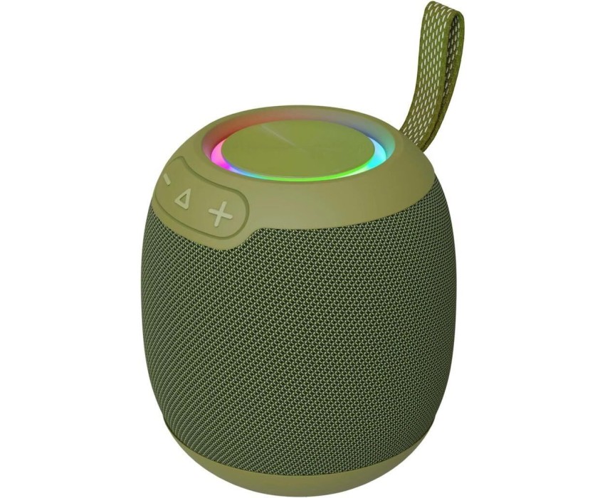 Суммарная звуковая мощность: 8. Цвет: оливковый. Акустический тип: 2.0. Тип электропитания: от USB - C/от сети. Интерфейс подключения: Bluetooth/USB-C. Радиус действия Bluetooth, до: 10. Емкость аккумулятора: 3000. Отношение сигнал/шум: 70. Расположение регуляторов: на верхней панели/ на передней панели. Особенности: Поддерживает функцию "handsfree". 4 режима светодиодного освещения. Встроенная цифровая обработка сигнала с 3 пассивными излучателями для мощного баса. 2 встроенных эквалайзера (стандартный и уличный).. Разъем USB: 1. Версия Bluetooth: v5.3. Класс влагозащиты: IPX7. Тип аккумулятора: Li-Ion. Время работы: 8. Время зарядки: 4. Вес: 392. Тип подсветки: RGB. Комплектация: Портативная колонка; руководство пользователя; зарядный кабель USB-C (длина 65 см.).. Материал корпуса: пластик. Габариты упаковки (ед) ДхШхВ: 0.128x0.098x0.163. Вес упаковки (ед): 0.67. Страна производства: Китай. Гарантия: 12 мес.. Частотный диапазон: 70 Гц - 18кГц. Размеры (ШхВхГ): 95.6 x 95.6 x 103 мм. Конструктивные особенности: влагозащита. Функциональные особенности: одновременное подключения двух колонок, подсветка. Акустический тип: 2.0. Радиус действия, до: 10 м. Подключение: Bluetooth/USB-C. Мощность: 8 Вт