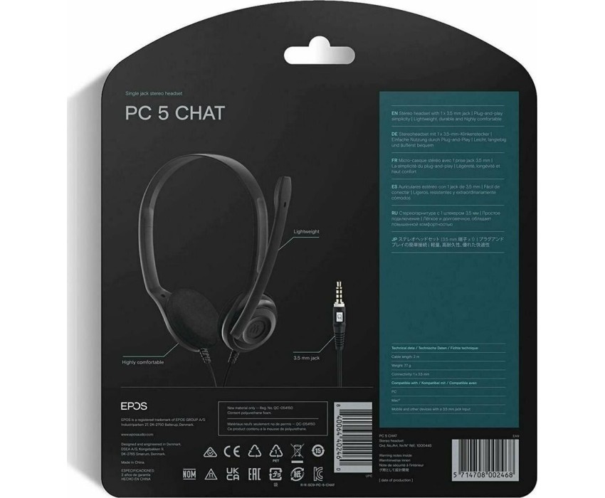 EPOS Гарнитура Sennheiser PC 5 Chat, для контактных центров, накладные, проводные, черный [1000445]