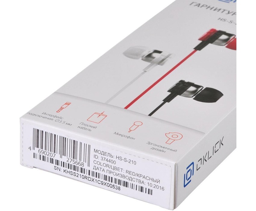 OKLICK Наушники HS-S-210, 3.5 мм, внутриканальные, красный d1r