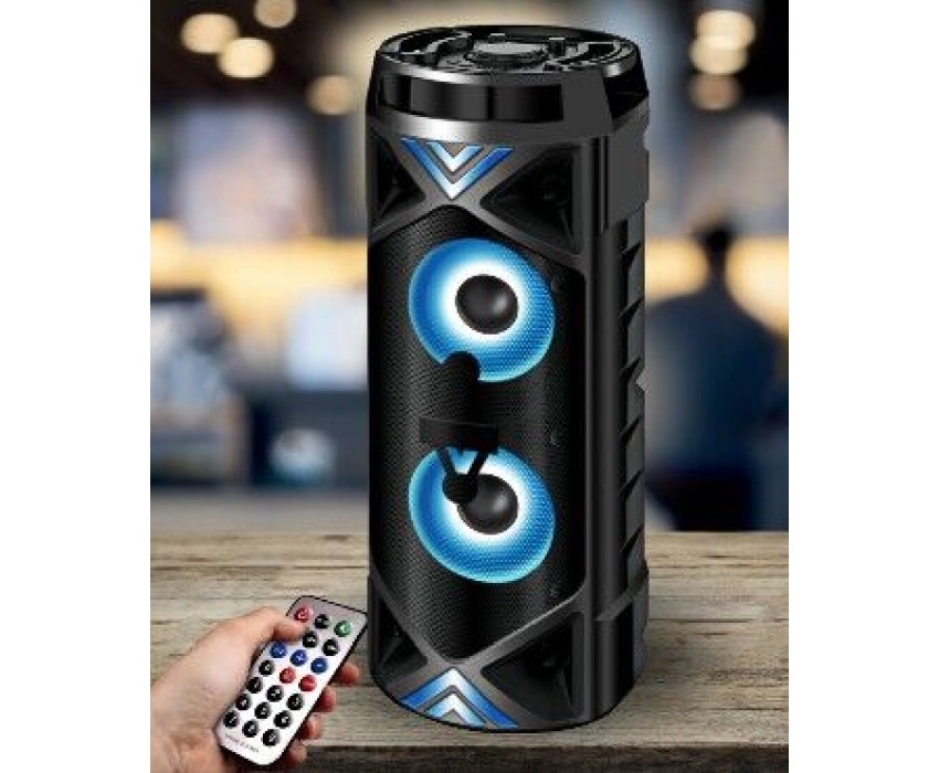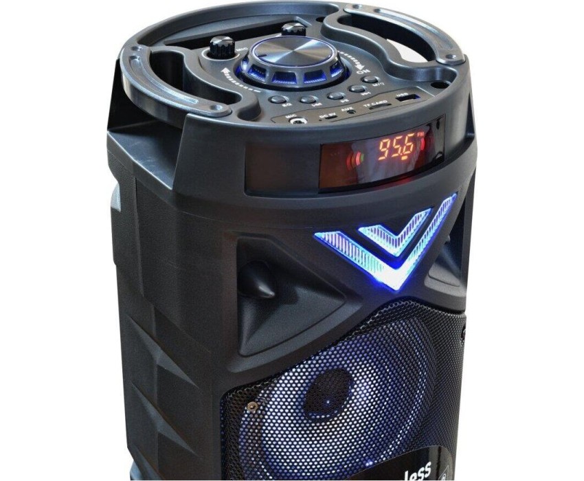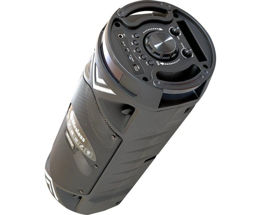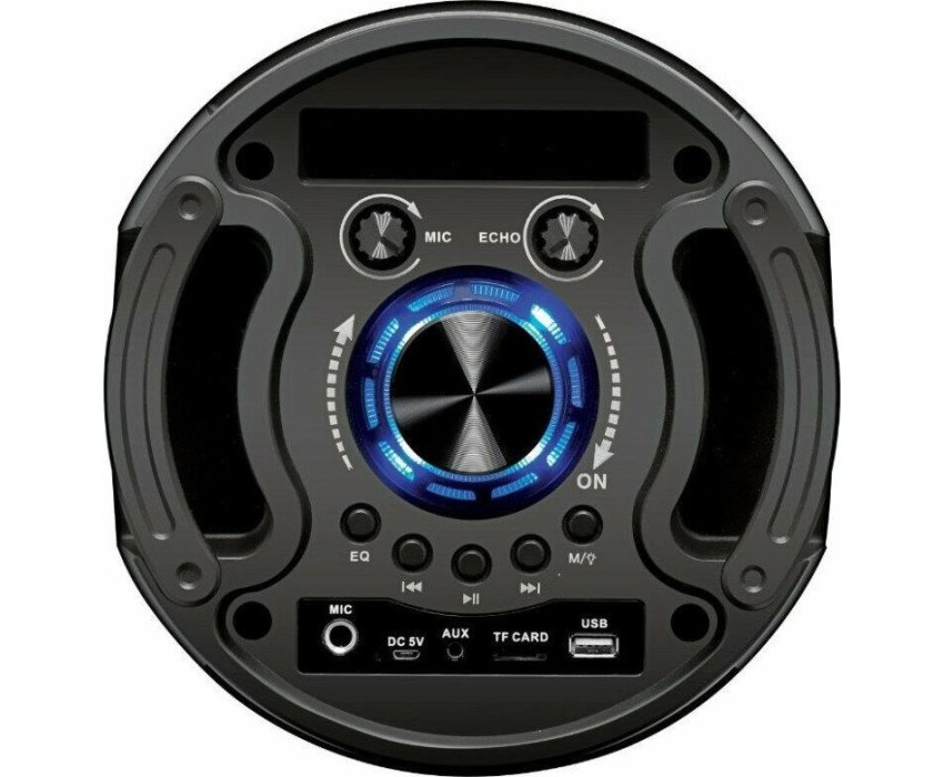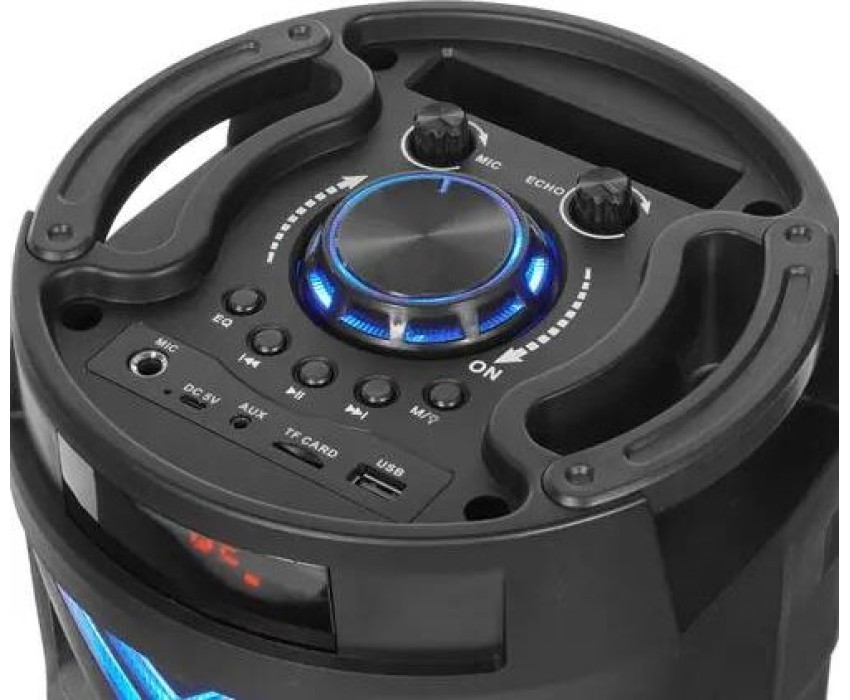 Переносная акустическая система Midi, с функцией BLUETOOTH (V5.0), 150- 18000Гц, выходная мощность RMS 50Вт, аудиоплеер USB-flash, microSD-card, FM-радио, пульт ДУ, эквалайзер (поп, рок, джаз, классика), режимы MUTE, STANDBY, микрофонный вход, функция КАРАОКЕ, динамическая LED подсветка динамиков. Входные интерфейсы - USB 2.0, Линейный выход 3.5 мм, Микрофонный вход 6.3 мм. Чувствительность - 80дБ. Материал корпуса - ABS пластик, Металл. Время работы от батарей - 4-5ч. Размеры - 575х230х230мм.