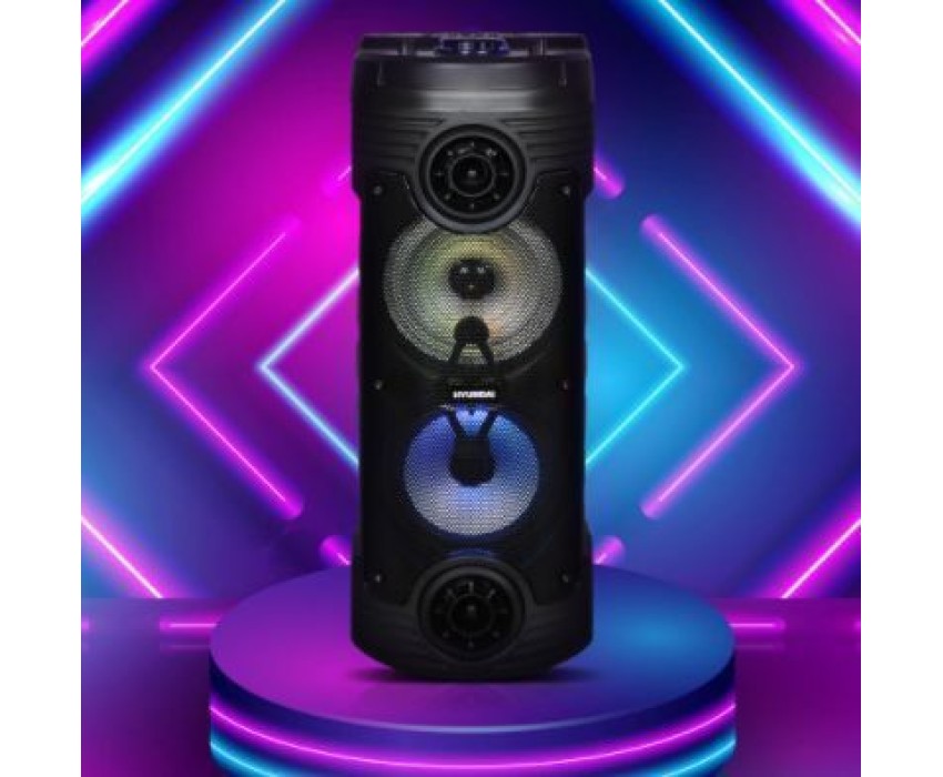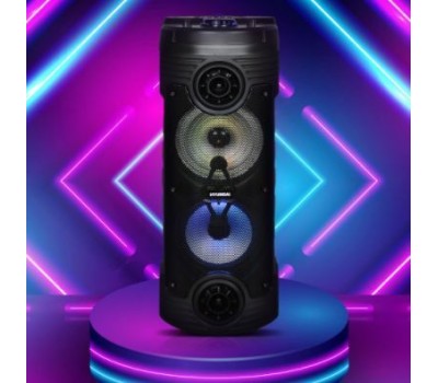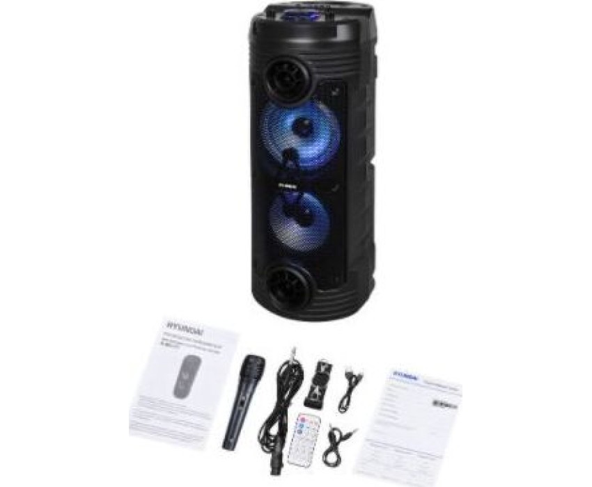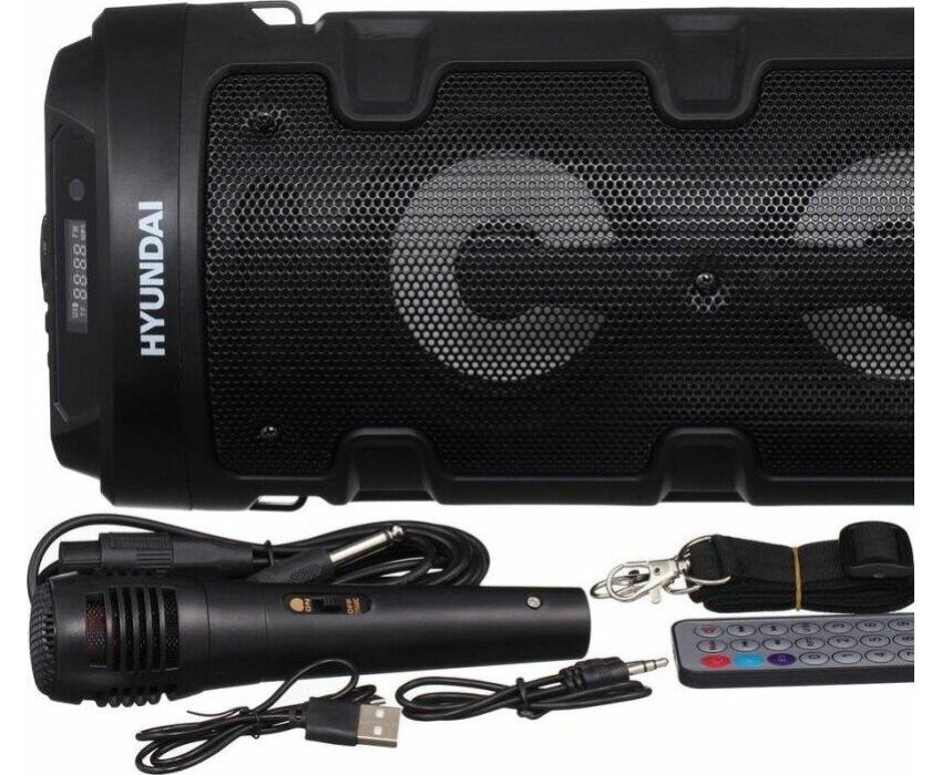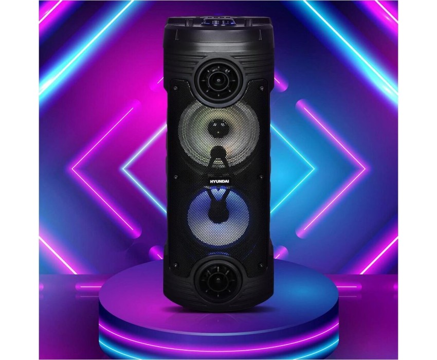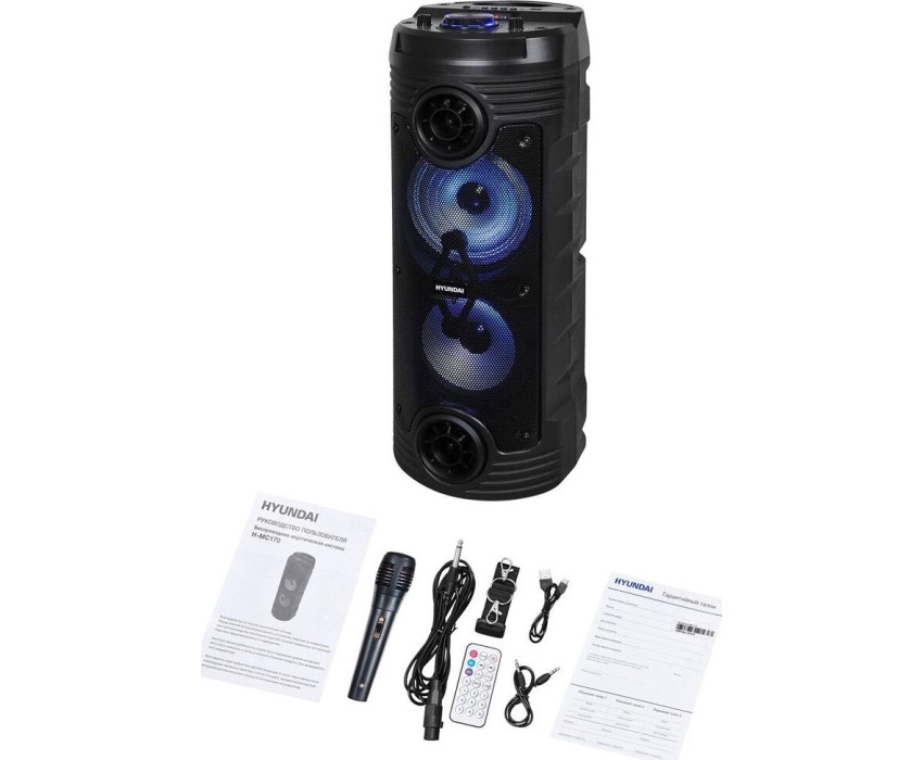 Акустическая система HYUNDAI H-MC170 с суммарной мощностью в 80 Вт подойдет для шумных вечеринок дома и на улице. Фазоинвертор улучшает звучание низких частот, а динамичная RGB-подсветка задаст темп вечеринке. На одном заряде модель работает до 23 часов. Что умеет HYUNDAI H-MC170: воспроизводить музыку с различных источников; работать в качестве радиоприемника; работать в качестве караоке и громкоговорителя; регулировать частоты звучания треков. Новое звучание привычных мелодий HYUNDAI H-MC170 выдает глубокий чистый звук в диапазоне от 100 Гц до 20 кГц. Ее мощности хватает для больших помещений, кафе, спортзалов и уличных площадок. Система воспроизводит музыку с карт памяти и USB-накопителей с объемом до 32 Гб. Для считывания треков с мобильных устройств используется Bluetooth 5.0. Стабильная передача сигнала позволяет слушать композиции при большом количестве помех от других устройств и при толстых стенах в помещениях.