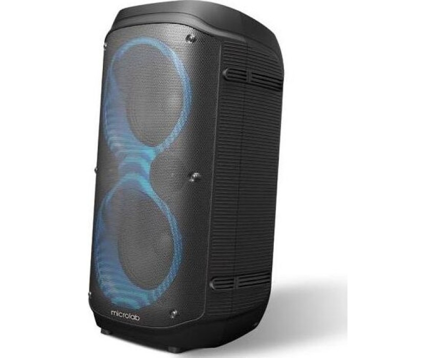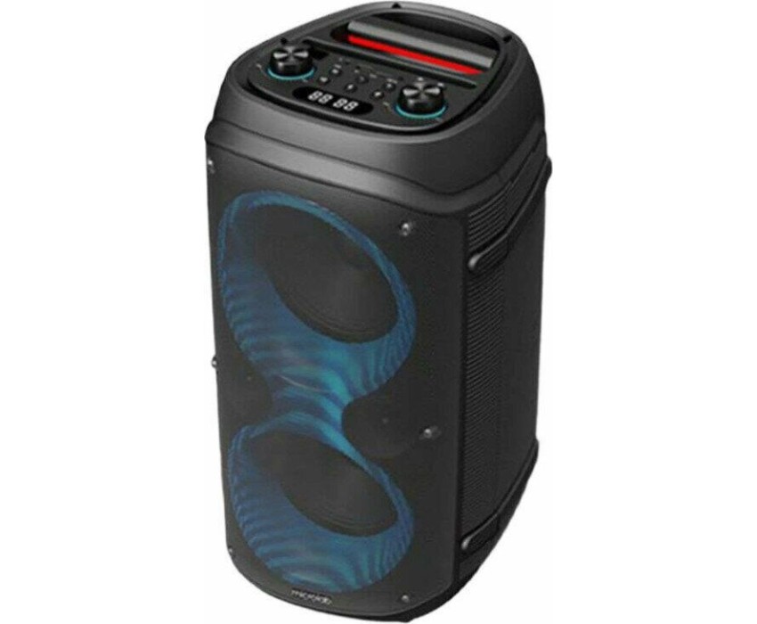Bluetooth: 5.0; Выходная мощность: 16 Вт при среднеквадратичной, 64 Вт при максимальной мощности; Встроенный аккумулятор: литиевая батарея 7,4 В / 2000 мАч; Время работы от 1 заряда: около 4 часов (при 60% громкости); Время зарядки: около 1,5 часа; Частотная характеристика: 40 Гц - 20 кГц; Сигнал/шумоподавление: 85 дБ; Колонки: Мембрана НЧ динамика: Двойной 6,5”, Мембрана ВЧ динамика: 1,5”; РАЗЪЁМЫ: Входы: Bluetooth, Aux, USB, MicroSD, FM-радио; Входы для микрофонов: 2; Входное питание: DC 9V 1.5A (адаптер); Пульт ДУ; Размеры: 320 x 310 x 580мм; Вес: 5,8 кг