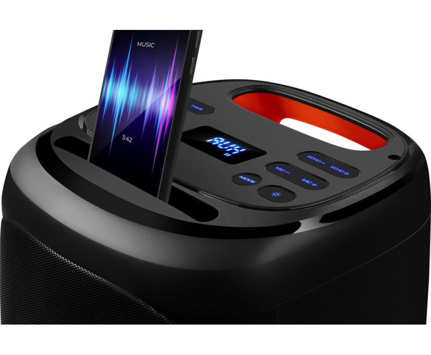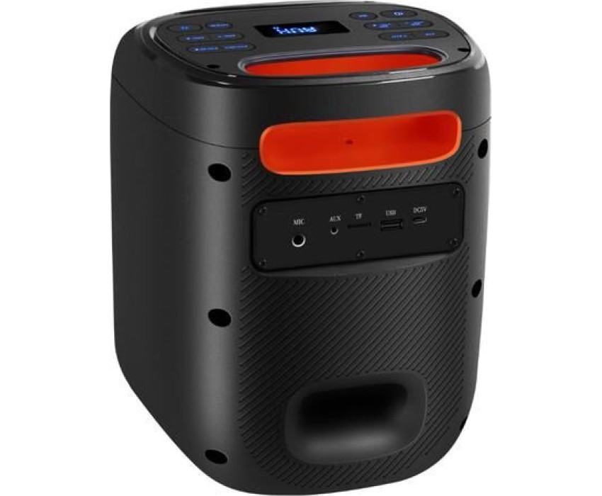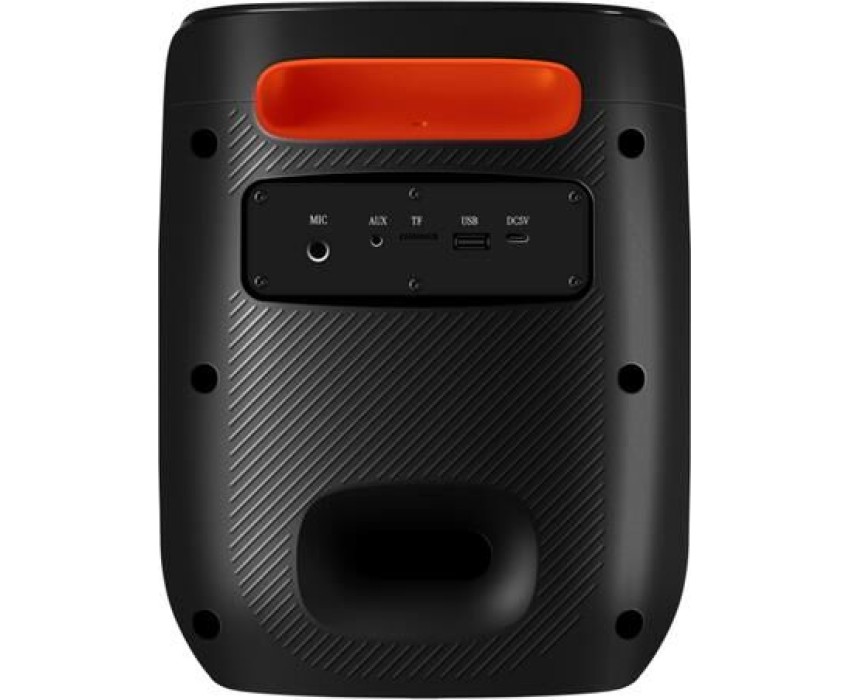 Тип акустической системы: активная Серия: для вечеринок Звуковая схема: моно, 1.1 Количество полос: 2 Широкополосный динамик: 6.5 " ВЧ твитер: 1.5 " Сопротивление динамиков: 4 Ом Сопротивление ВЧ твитера: 8 Ом Материал диффузора динамиков: целлюлоза Акустическое оформление: фазоинверторного типа Расположение порта фазоинвертора: тыл Суммарная выходная мощность (RMS): 50 Вт Соотношение сигнал/шум: 75 дБ Диапазон частот: 90–20000 Гц DSP-процессор: есть Эквалайзер: Pop, Rock, Jazz, Classical, Normal, Country Интерфейс беспроводной связи: Bluetooth 5.0 Дальность действия: 10 м Время автоматического отключения питания колонки при разъединении Bluetooth-соединения: 10 мин True Wireless Stereo (TWS): есть Дисплей: есть Пульт ДУ: нет Интерфейс: AUX-аудиовход Подсветка: светодиодная Световые эффекты: есть Количество световых режимов: 4 Функция выключения подсветки: есть Питание: от USB, 5 В , Li-Ion аккумулятор Напряжение аккумулятора: 7.4 В