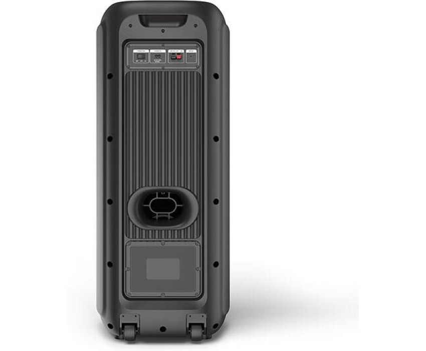 Bluetooth 5.0+BDR+EDR. Время автономной работы До 5 ч. Мощность (RMS) 100 Вт. Емкость батареи 12 В, 7500 мАч. Тип аккумулятора Lead-acid. Время зарядки До 6 часов. Дальность действия 25 м. TWS Да. Эквалайзер Да. Подсветка Да. Поддержка HANDS-FREE Нет. Функция Powerbank Да. Влагозащита Нет. FM-радио Да. Максимальный размер USB - накопителя 128 ГБ. Разъемы USB, AUX, Micro SD. Внешние размеры 345 х 365 х 855 мм. Комплектация Портативная акустика, AUX кабель, кабель для зарядки, беспроводной микрофон, пульт ДУ, руководство по эксплуатации, гарантийный талон. Ручка для переноски Да. Пульт ДУ Да. Беспроводной микрофон Да. Вес нетто 14.76 кг.