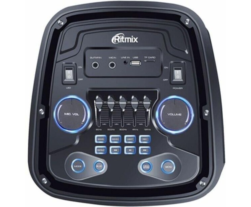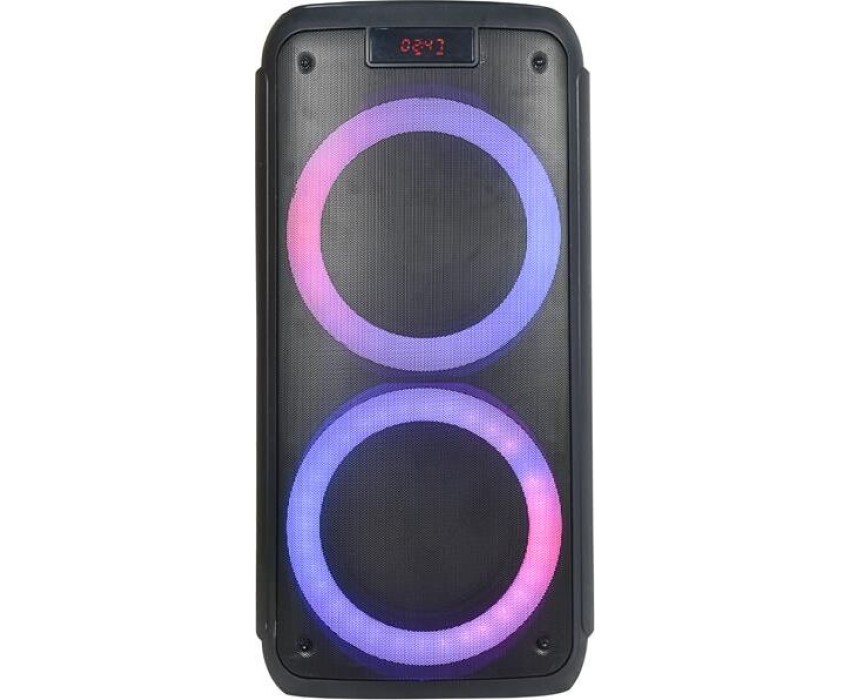 Портативная колонка-плеер TWS-режим, Bluetooth, USB, microSD, AUX, FM-радио Характеристики Портативная акустическая система с Bluetooth. Мощность: 120 w Динамик: 8”*2 шт Частоты: 30 Hz - 18 000 Hz Версия BT: v5.0 Аккумулятор: 3600 mAh/7,4 V Время работы: до 6 часов Размеры колонки: 300*300*660 мм Воспроизведение: Bluetooth, USB, microSD, AUX Функция: TWS, FM-радио