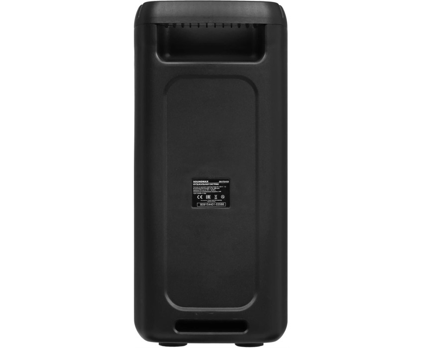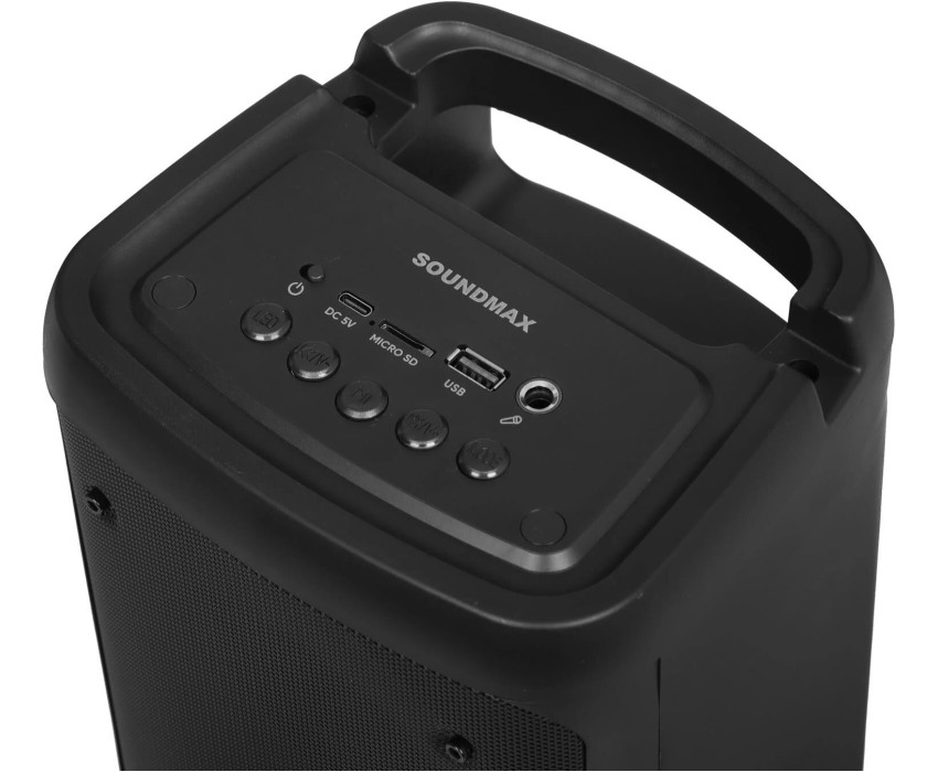 Номинальная выходная мощность: 40 Вт Динамики: 2 x 4” Bluetooth 5.3 Функция True Wireless Stereo Цифровой FM-тюнер (87.5 – 108 МГц) Поддержка аудиформатов MP3, WAV Поддержка аудионосителей: USB/microSD (до 64 ГБ) Аудиовход AUX-in (3.5 мм jack) Вход для микрофона (6.35 мм jack) Круговая LED подсветка динамиков Встроенная li-ion батарея: 3.7 В, 2400 мАч Время работы до 8 часов* Разъем Type-C для зарядки (DC 5 B) Комплектация: USB-кабель Цвет: черный Размер : 174 x 370 x 153