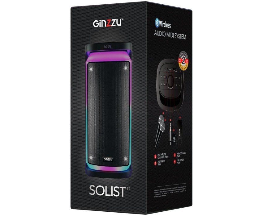 модель SOLIST ДИНАМИКИ: НЧ/СЧ/ВЧ - 2 х 6.5 + 3 дюймов. КАРАОКЕ функция - 2 х микрофона DC-jack 6,5 мм. ДИНАМИЧЕСКАЯ RGB подсветка динамиков. ЭКВАЛАЙЗЕР: POP, ROCK, JAZZ, CLASSIC, FLAT. Встроенный аккумулятор Li-Ion, 7.4В, 4500 мАч. BLUETOOTH: V5.0. Поддержка режима TWS. FM РАДИО: 87,5-108,0 МГц. АУДИО-ПЛЕЕР: USB-flash и микро SD-card. AUX: DC-jack 3,5 мм. Пульт дистанционного управления. Диапазон воспроизводимых частот: 50 Гц - 18 КГц. ГАРАНТИЯ 2 ГОДА.
