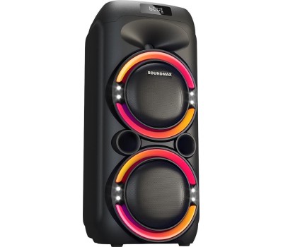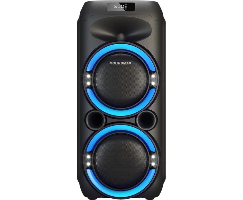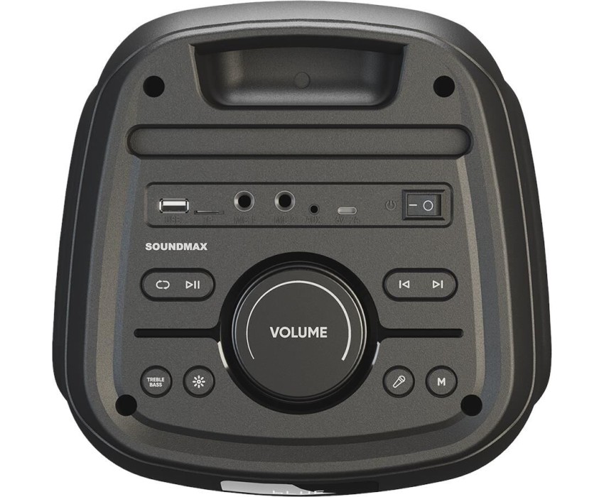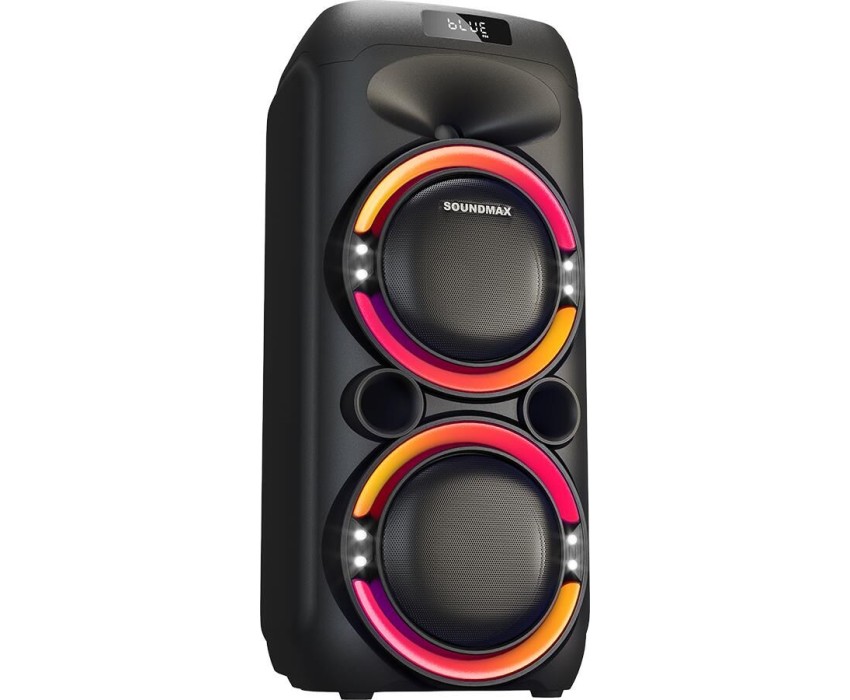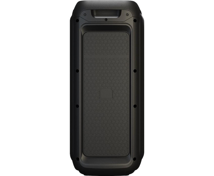 Номинальная выходная мощность (RMS): 80 Вт Пиковая выходная мощность (PMPO): 800 Вт Динамики: 2 x 6.5 + 1 x 1.5 Bluetooth 5.0 Поддерживаемые аудиоформаты: MP3, WAV, WMA, FLAC, SBC Функция True Wireless Stereo (TWS) Цифровой FM-тюнер (87.5-108 МГц) Воспроизведение с USB 2.0 и microSD карты Аудиовход 3.5 мм jack Вход для микрофона 6.35 мм jack Функция караоке Встроенная аккумуляторная батарея: 3000 мАч Время работы от аккумулятора до 8 часов* LED дисплей Многоцветная LED подсветка Размеры устройства: 562 х 266 х 256 мм Цвет: черный