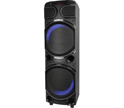 AO-500 – напольная переносная акустическая колонка 1.0 (моно) Мощность RMS (Вт) 160 Bluetooth v.5.0 Поддержка режима TWS Li-Ion аккумулятор 7000 мА*ч, 12В Поддержка USB, SD, форматы файлов MP3 с битрейтом 64-320 Кбит/с, FLAC, WAV, WMA FM-радиоприемник Входы AUX Line-in (миниджек 3.5 мм) Караоке: есть регулятор громкости и возможность записи на USB флэш накопитель, микрофонный вход, 1 беспроводной микрофон в комплекте Усилитель встроенный Соотношение сигнал/шум, Дб 60 Гармонические искажения <10% ИК пульт Динамическая многоцветная цветомузыка вокруг динамиков на фронтальной панели. Динамик(и) НЧ/СЧ 2*10″ + ВЧ 2″ Сопротивление (Ом) 4 Частотный диапазон (Гц-КГц) 65-18 Корпус пластик Комплект поставки акустическая система - 1шт, адаптер питания - 1 шт, беспроводной микрофон - 1 шт, ИК пульт ДУ - 1 шт, батарейки ААА для пульта ДУ - 2 шт, батарейки АА для беспроводного микрофона - 2 шт.