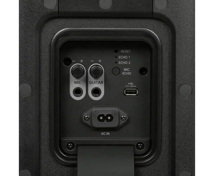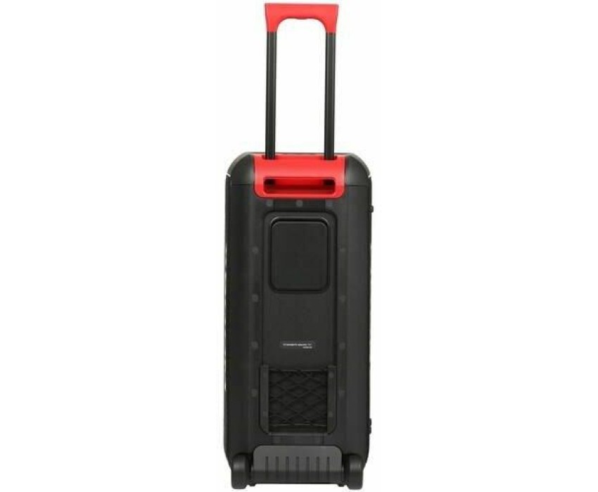 Тип минисистема.; Суммарная мощность (RMS)250 Вт.; Подсветка ДА.; Поддерживаемые аудио форматыMP3, WMA.; Интерфейс USB Да.; Микрофонный вход ДА.; Bluetooth Да.; Караоке ДА.; Особенности Колеса. Вход для гитары 6.3mm. Пользовательский эквалайзер - только в приложении.; Время работы от встроенной батареи 20 ч.; Цвет черный.; Размеры сабвуфера 310x700x316мм.; Вес товара 15.5 кг.; Телескопическая ручка ДА.