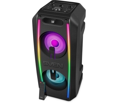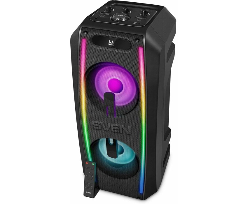 Выходная мощность 100 Вт . Динамическая отключаемая RGB подсветка . Беспроводное подключение двух колонок к одному источнику звука (TWS) .Два микрофонных входа для караоке . Регулировка уровня эха караоке микрофона . Воспроизведение музыки с USB flash и microSD карт памяти . LED дисплей . Пульт ДУ . Функция эквалайзера . FM-радио* . Быстрое подключение по Bluetooth с помощью NFC** . Встроенный Li-Ion аккумулятор . Поддерживаемые аудиоформаты MP3, WAV, WMA, FLAC . литий-ионный aккумулятор: 7.4В, 4400мА*ч .
