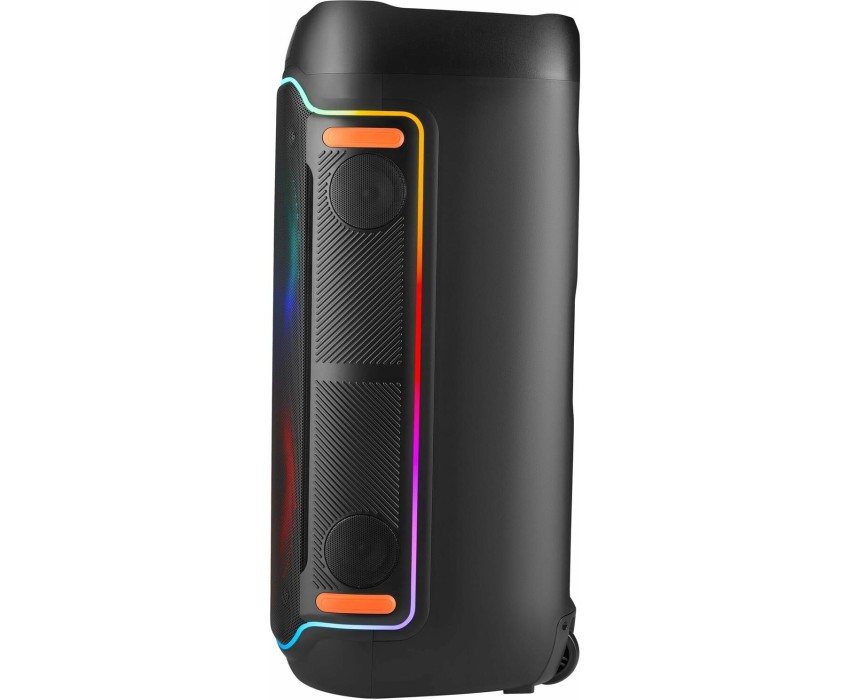 Мощная портативная акустическая Bluetooth система с LED подсветкой, дисплеем, встроенным MP3-плеером и FM-тюнером. Поддержка флеш накопителей и карт памяти microSD. Благодаря функции TrueWireless может объединяться в кластер с аналогичной системой и создавать эффект объемного звучания.