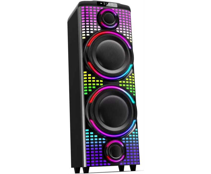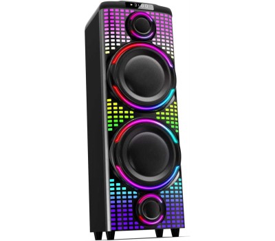 Акустическая система с Bluetooth, FM радио, и TWS. Пиковая музыкальная мощность: 800Вт (PMPO), Выходная мощность: 100Вт (RMS), Материал корпуса MDF, пластик, LED дисплей Настраиваемая светодиодная подсветка с функцией отключения, Частотный диапазон: 60Гц-18КГц, Диапазон частот FM тюнера: 87,5 - 108МГц, Размеры динамиков, низкочастотный динамик -10'' *2шт, твитер -3'' *2шт, Bluetooth V5.3, USB для проигрывания музыки, USB для зарядки внешних устройств 5V, 1 входа для микрофона, 1 вход для гитары, Вход AUX Вход TF CARD, Регулировка громкости микрофона, уровня эхо, функция регулировки эквалайзера, Функция TWвS, Встроенная аккумуляторная батарея 12В, 7000 мAч Внешнее питание: AC 100-240В, Дистанционный пульт управления, Размеры изделия, 35 * 31,5 * 104 см, Вес: 17,25 Кг.
