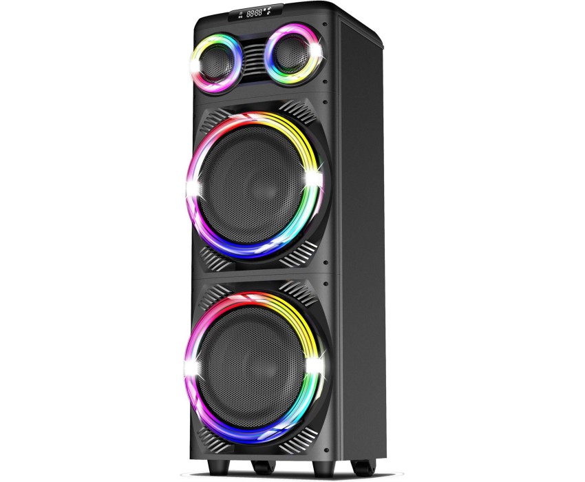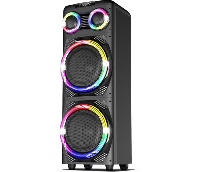 Акустическая система с Bluetooth, FM радио, и TWS, Пиковая музыкальная мощность: 1250Вт (PMPO), Выходная мощность: 160Вт (RMS), Материал корпуса MDF, пластик, LED дисплей Настраиваемая светодиодная подсветка с функцией отключения, Частотный диапазон: 60Гц-18КГц, Диапазон частот FM тюнера: 87,5 - 108МГц, Размеры динамиков, низкочастотный динамик -12'' *2шт, твитер -3'' *2шт, Bluetooth V5.3, USB для проигрывания музыки USB для зарядки внешних устройств 5V, 2 входа для микрофона, AUX TF CARD, Регулировка громкости микрофона, уровня эхо, функция регулировки эквалайзера Функция TWS, Встроенная аккумуляторная батарея 12В, 7000 мAч, Внешнее питание: AC 100-240В, Дистанционный пульт управления, Размеры изделия, 38*39*114 см, Вес: 21,5 Кг