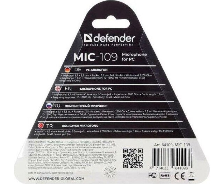 микрофон DEFENDER (64109) MIC-109 черный