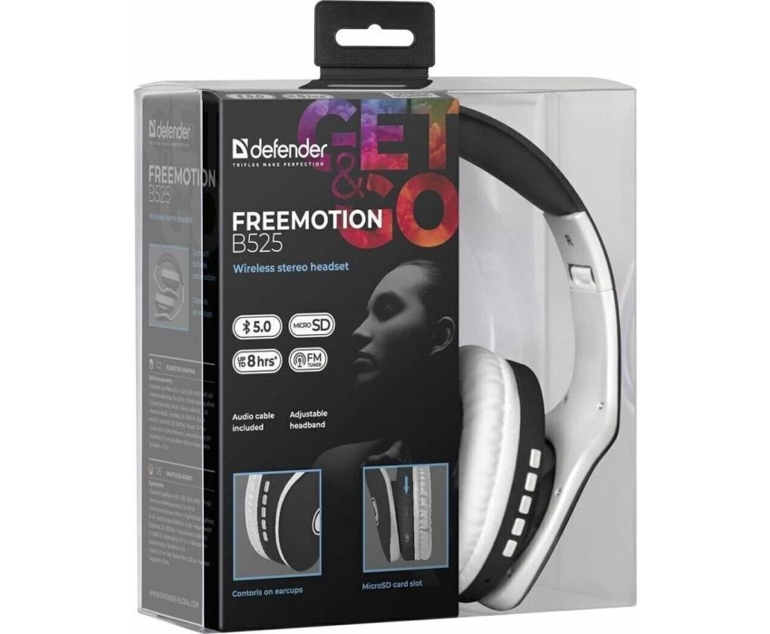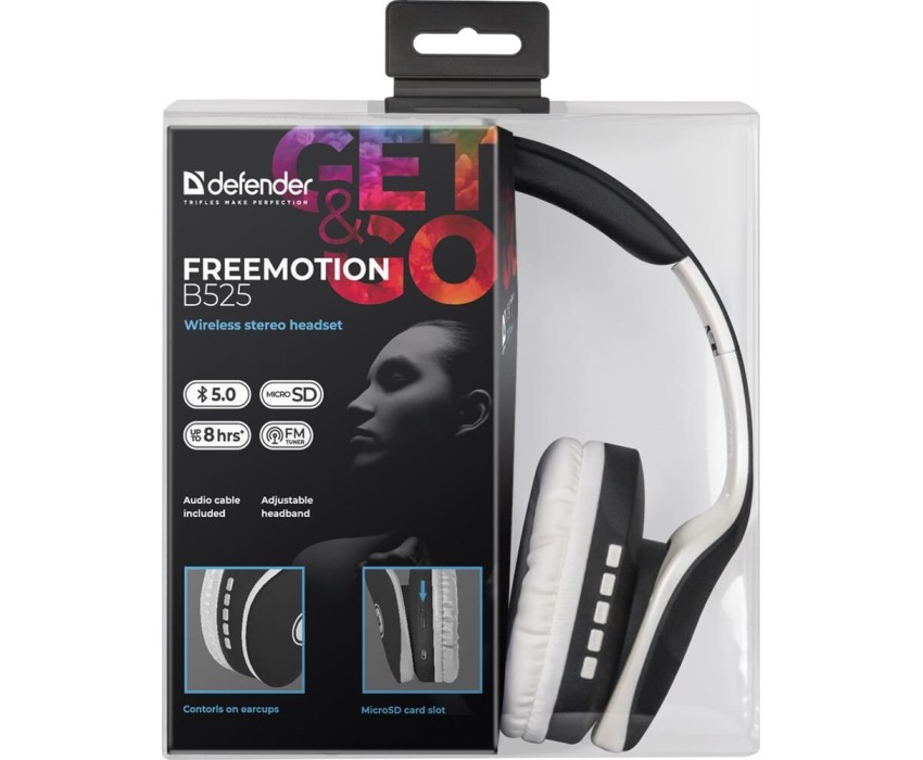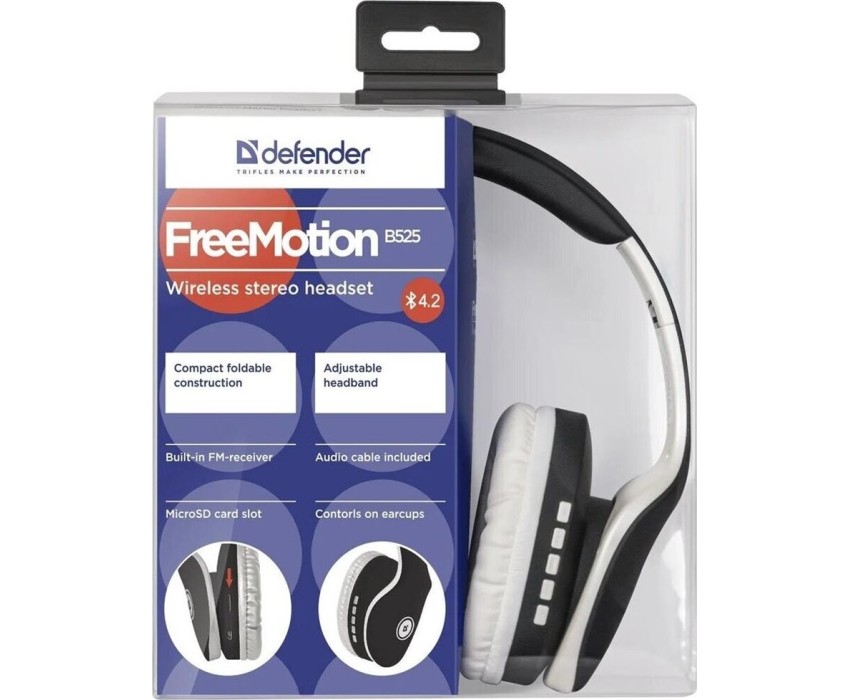 Наушники DEFENDER (63525) FREEMOTION B525 черный/белый