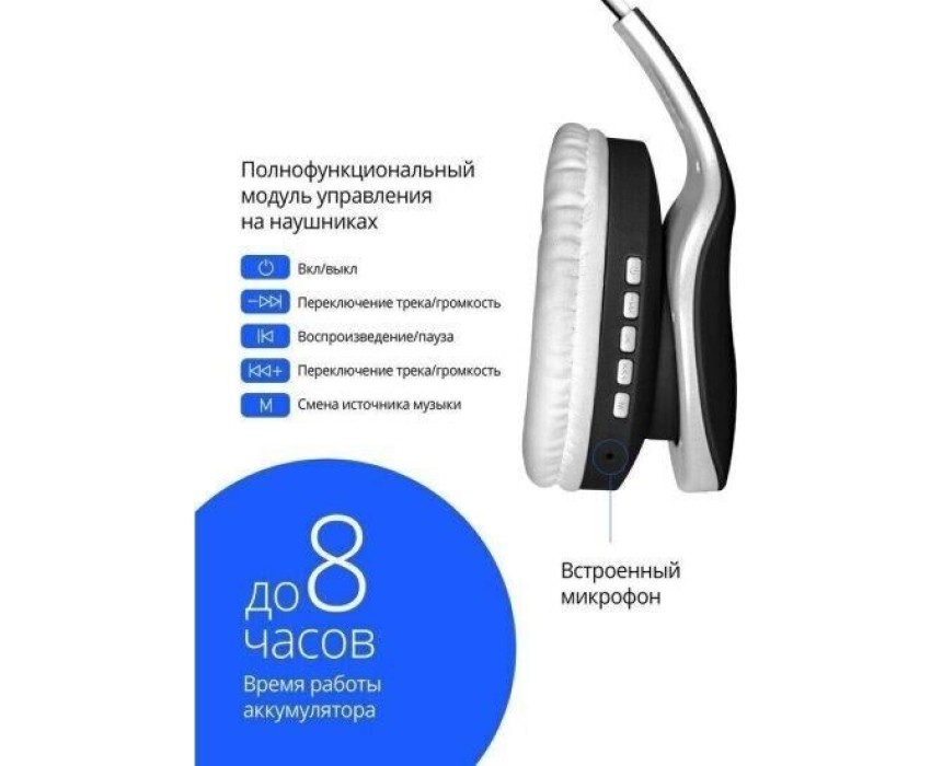 Тип подключения: Беспроводной Bluetooth, Чувствительность (наушники): 94 дБ, Чувствительность (микрофон): 32 дБ, Частотный диапазон (наушники): 20–20000 Гц, Частотный диапазон (микрофон): 20–16000Гц, Радиус действия: 10–15 м, ROHS/CE, Bluetooth-спецификация: V5.0 + EDR, A2DP, AVRCP, HFP, HSP, Диапазон рабочих температур: -20–60 °, Частотный диапазон радиочастотного трака: 2.402–2.480 ГГц, Диаметр мембраны: 40 мм, Время работы в режиме разговора / прослушивания музыки: 8 час, Разъемы: 3,5-мм джек, Micro-USB для зарядки батареи.