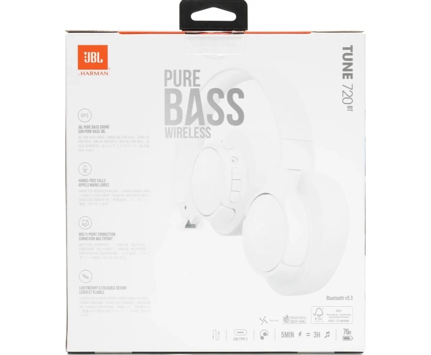 Наушники накладные беспроводные JBL WRL BT T 720 BT WHT