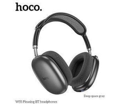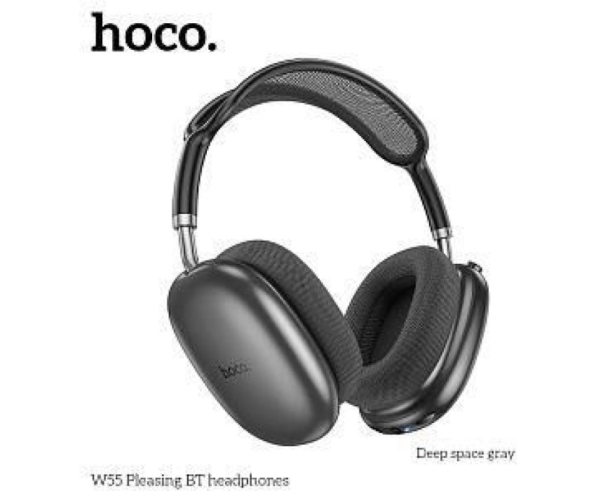 Hoco W55 — стильные беспроводные полноразмерные наушники для использования с ТВ, аудио, видео техникой, компьютером, телефоном или ноутбуком, обеспечивают беспроводную связь через версию Bluetooth 5.4. Наушники оснащены удобными, мягкими амбушюрами, в которых не чувствуется дискомфорт даже при длительном использовании. Гарнитура оснащена слотом для карты памяти, что дает возможность сделать из наушников аудиоплеер mp3. Устройство имеет емкость батареи: 800mAh, время работы в режиме использования составляет 90 часов, в режиме ожидания до 200 часов. Полная зарядка батареи займет около двух часов. Имеет два языка уведомлений английский и китайский.