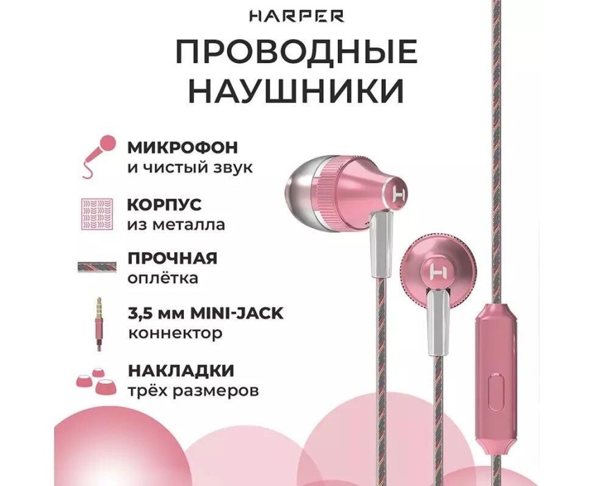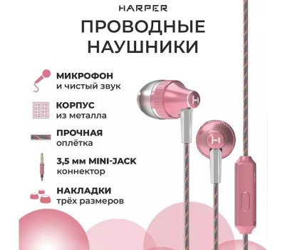 Наушники вкладыши HARPER HV-705 pink