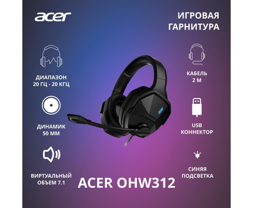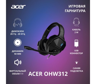 ACER Наушники с микрофоном OHW312 черный 2м мониторные USB оголовье (ZL.HDSEE.007)