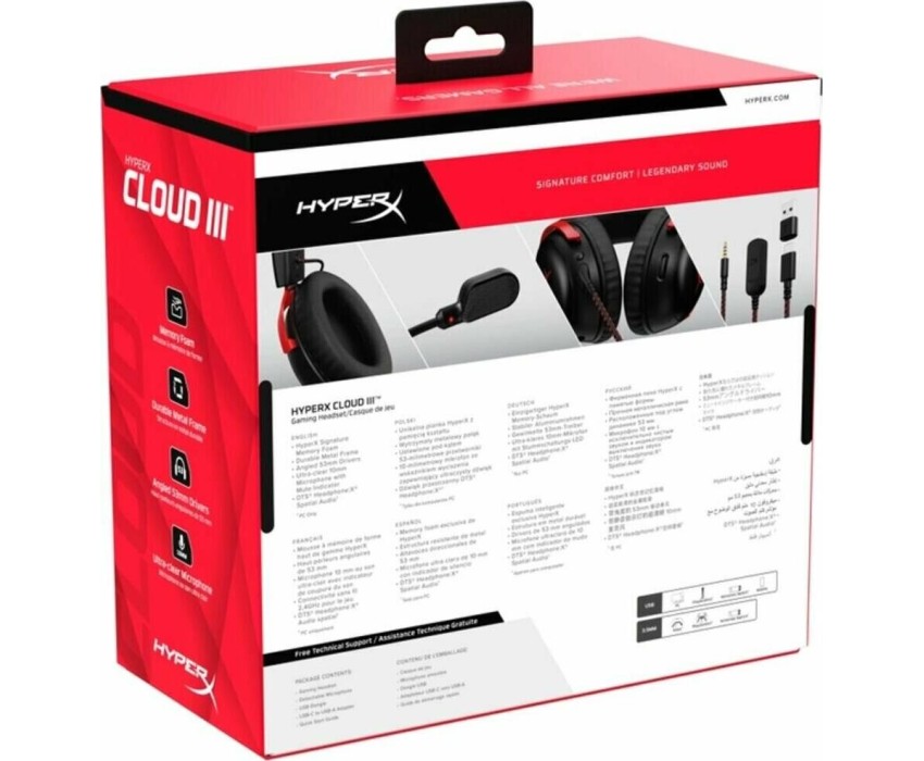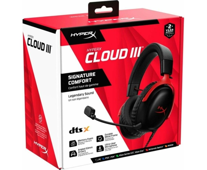HYPERX Гарнитура игровая Cloud III, для компьютера и игровых консолей, мониторные, проводные, черный / красный [727a9aa]