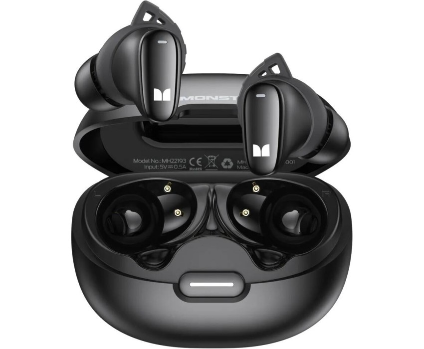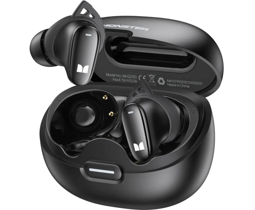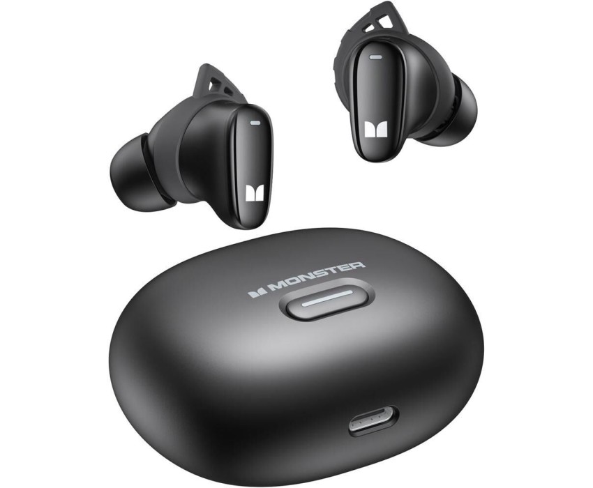 Наушники беспроводные TWS MONSTER N-Lite 206 (MH22193), чёрные. Эргономичные наушники в компактом кейсе, фирменный звук от MONSTER, в комплекте 6 вставок (S/M/L).bluetooth v 5.4/chipset n/a/battery Earphones 35mAh, Charging Case 300mAh/water resistance IPX5/play time (50%) volume 5h