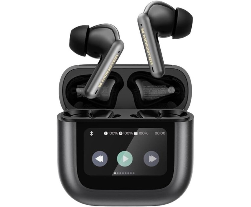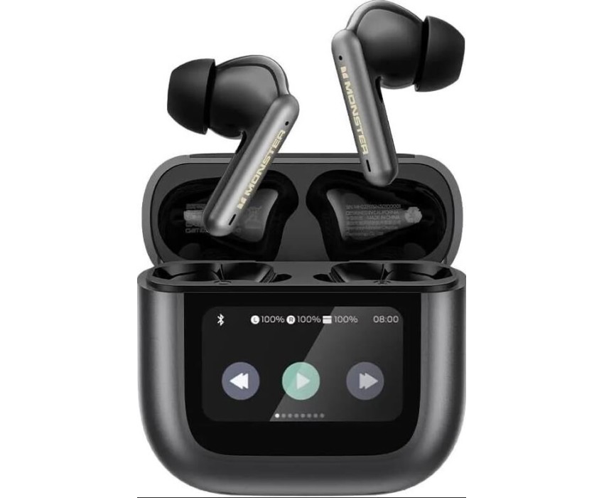 Эргономичный дизайн, шумоподавление ANC+ENC, LED touch экран, фирменный звук от MONSTER. bluetooth v 5.4/ chipset JL7003D8 + 7012F6/ battery- Earphones 30mAh, Charging Case 400mAh/ water resistance- IPX5/ play time (50% volume) 4h