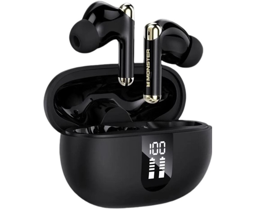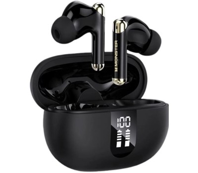 Наушники беспроводные TWS MONSTER N-lite 211 черные. Компактные, изящные внутриканальные наушники со сменными вставками и индикатором уровня заряда на кейсе. bluetooth v 5.4/chipset- JL6973D4/ battery Earphones 35mAh, Charging Case 350mAh/ play time (50% volume) 5h/water resistance - IPX5