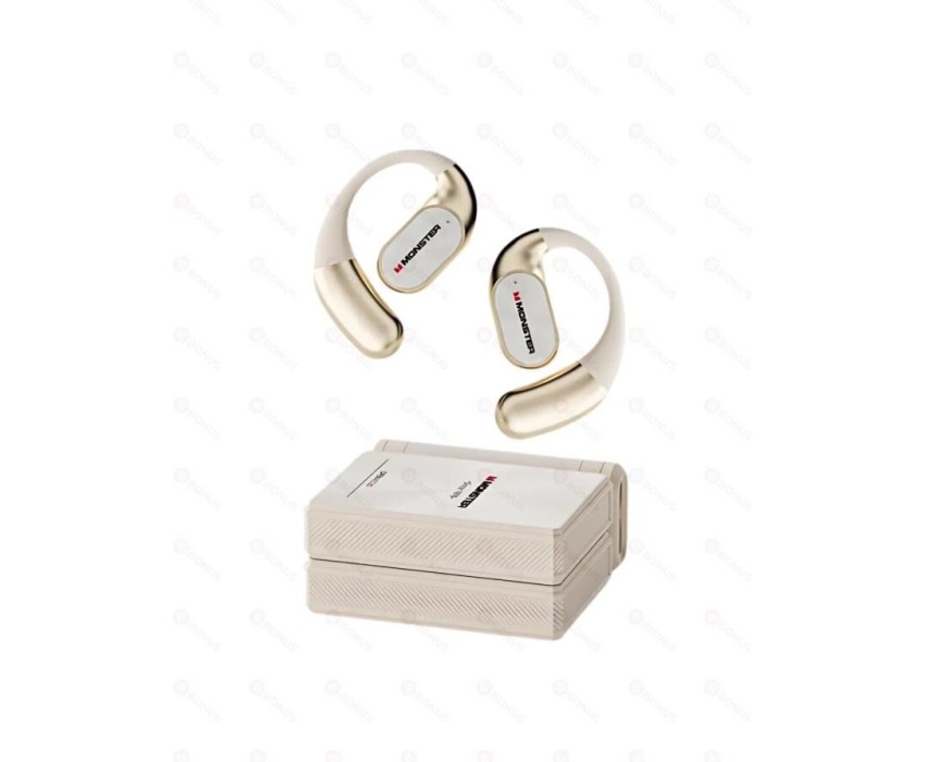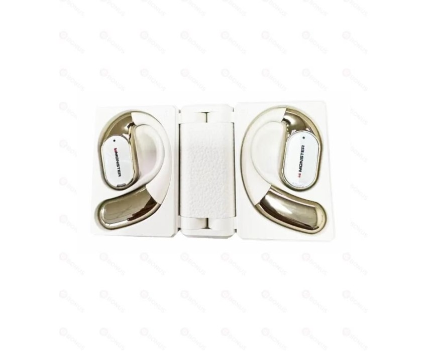 Наушники беспроводные OWS MONSTER Open Ear AC530 (MH22248),белые. Удобные и лёгкие открытые наушники с костной проводимостью, громкий и детальный звук, надёжная фиксация на ухе, премиальный дизайн кейса (форм фактор книжки)/bluetooth v 5.4/chipset n/a/battery Earphones: 50mAh, Charging case 300mAh/ water resistance IPX5 for earbuds, not waterproof for charging case/play time (50% volume) 7h