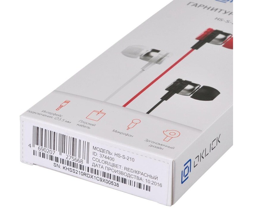 Наушники OKLICK Наушники внутриканальные Оклик HP-S-210 1.2м красный проводные в ушной раковине (D1-1R)