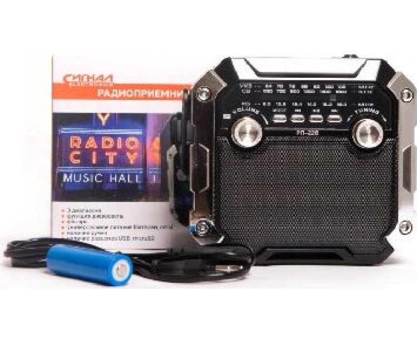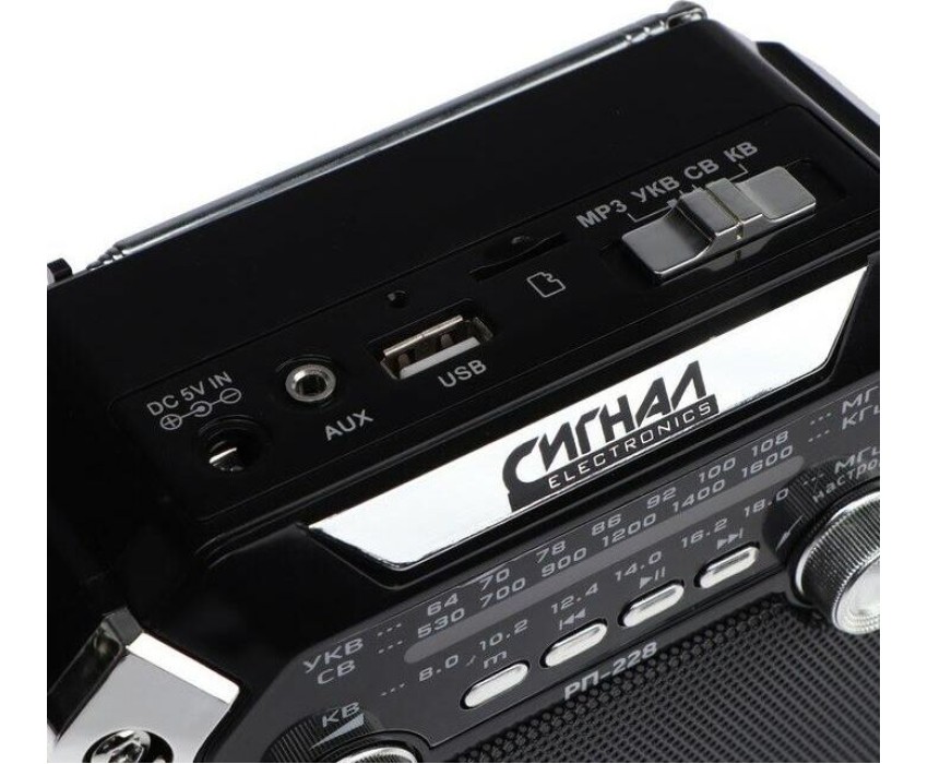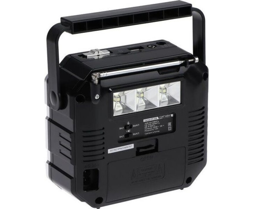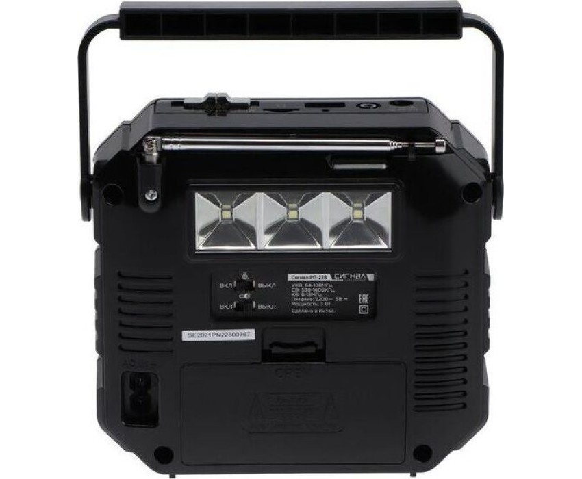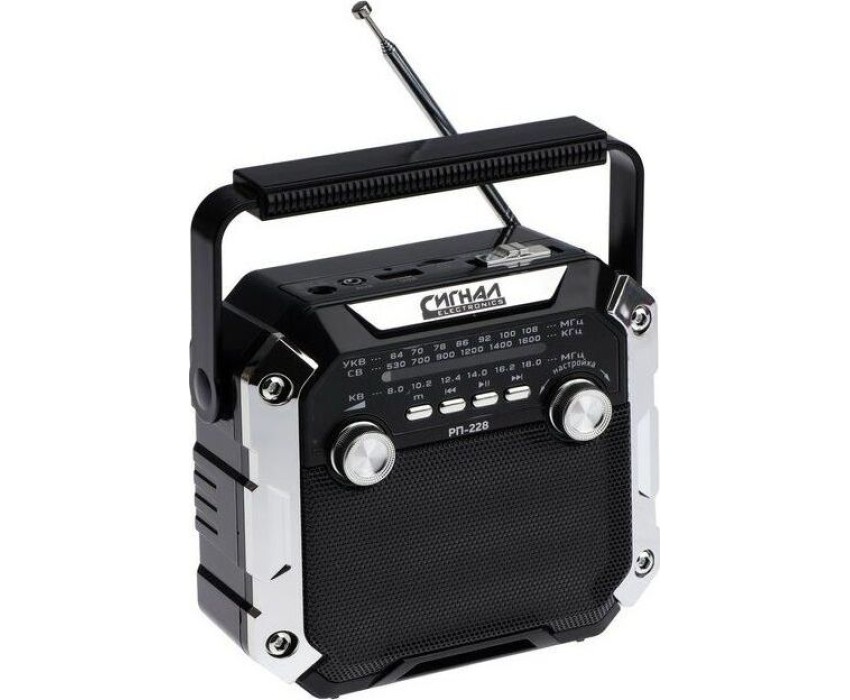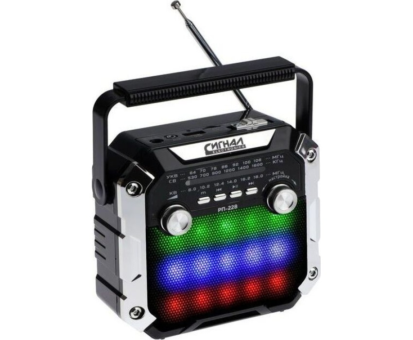Радиоприемник СИГНАЛ РП-228 УКВ 64-108МГц, 220V, акб 1200mA/h, USB/microSD/AUX, светодиодный фонарь/дискосвет