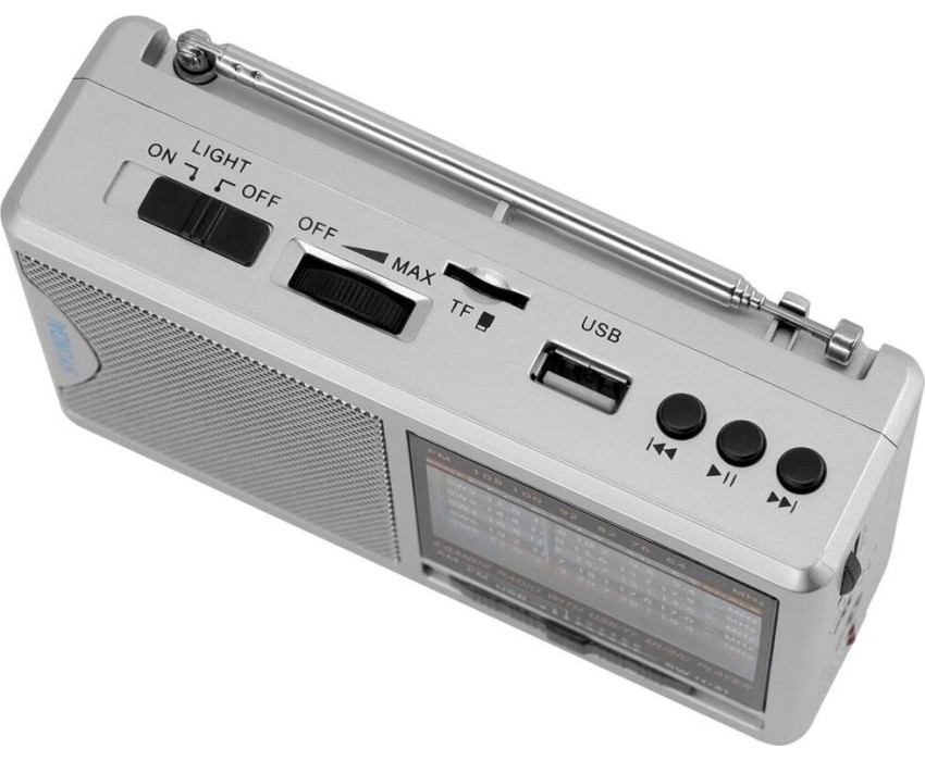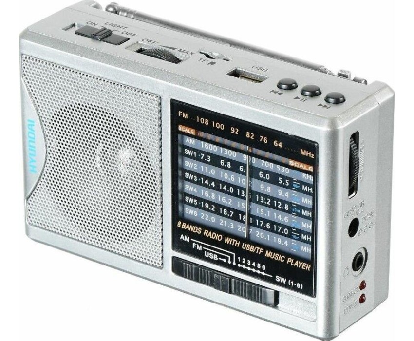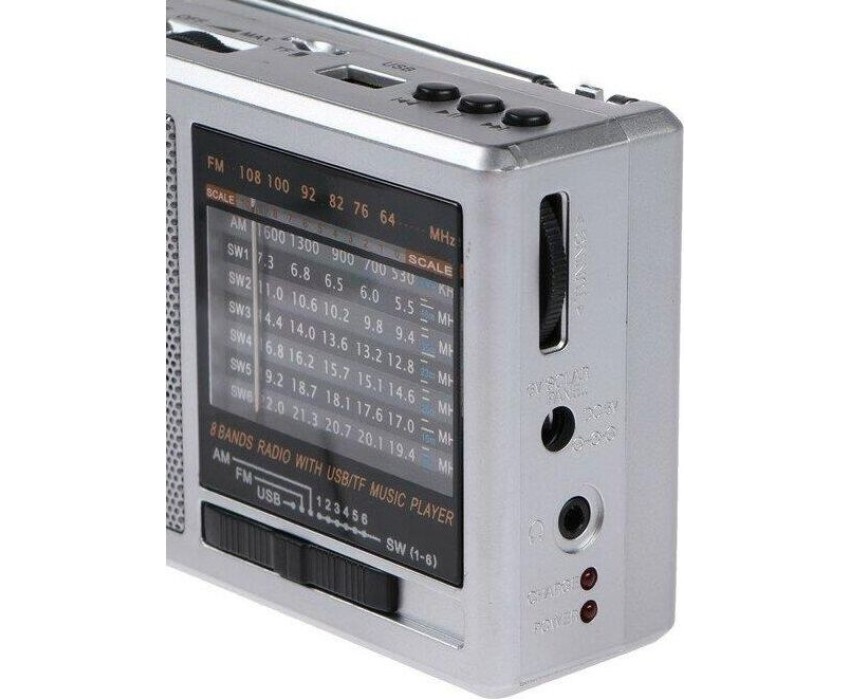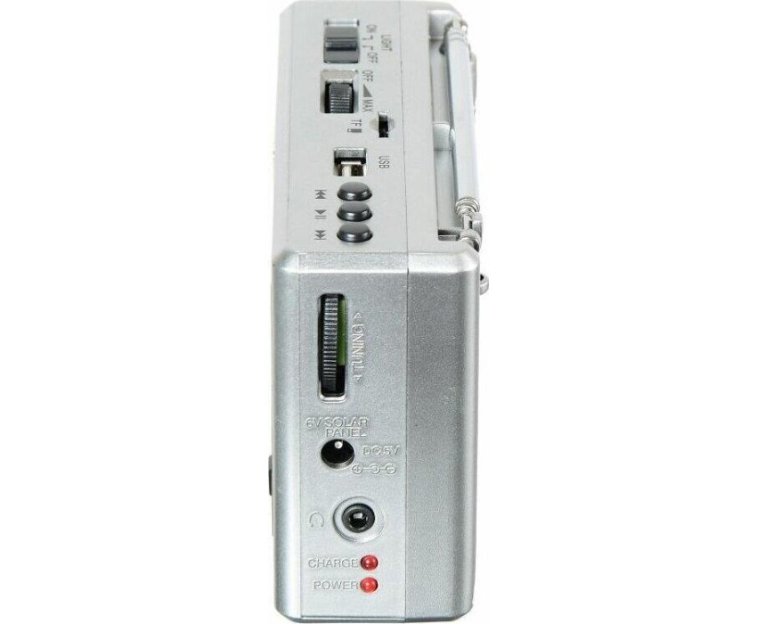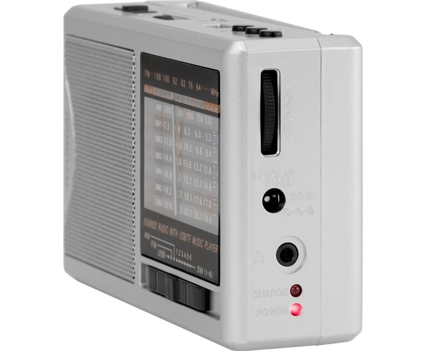 портативный, тюнер — аналоговый, FM, AM, SW, USB — 1, поддержка карт памяти microSD, разъем для наушников — 3.5 мм, цвет — серебристый