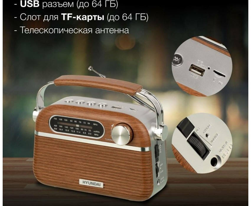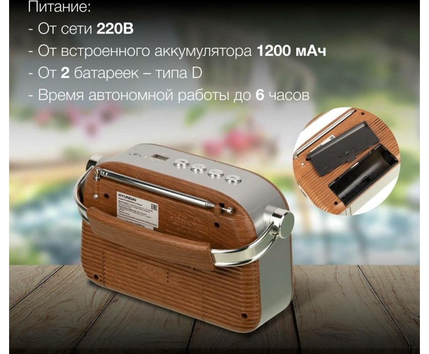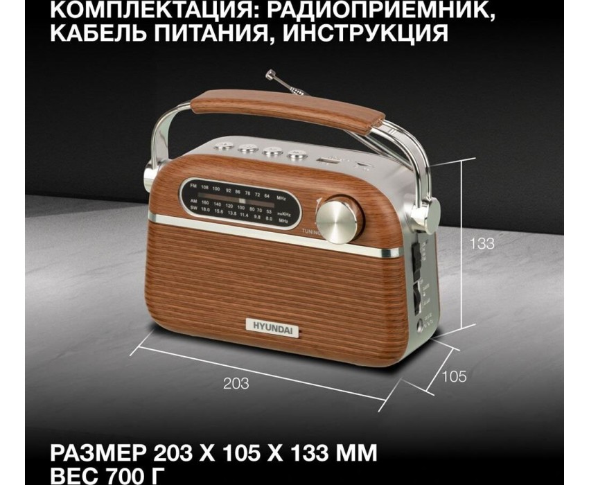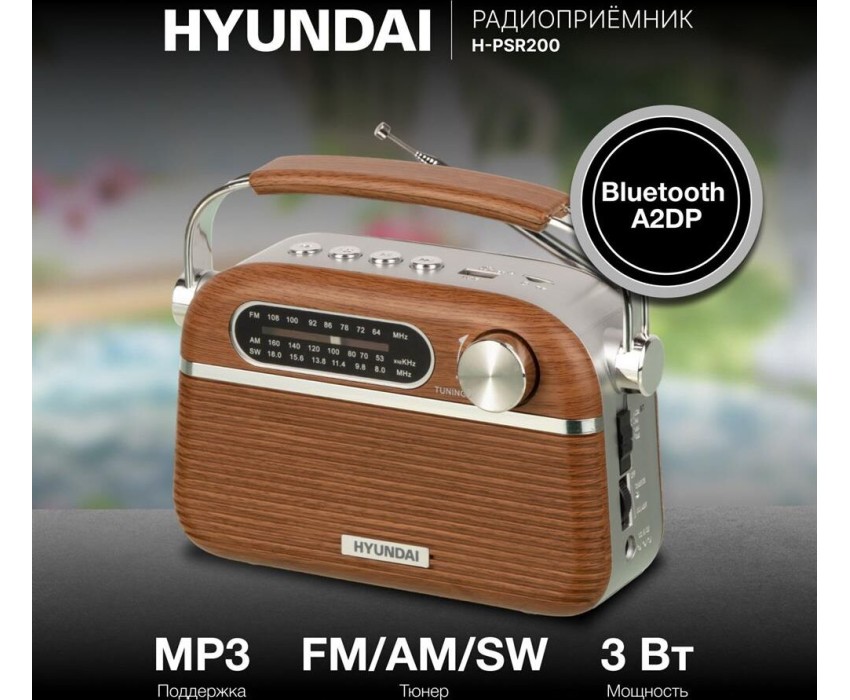 Радиоприемник HYUNDAI H-PSR200 дерево коричневое/серебро