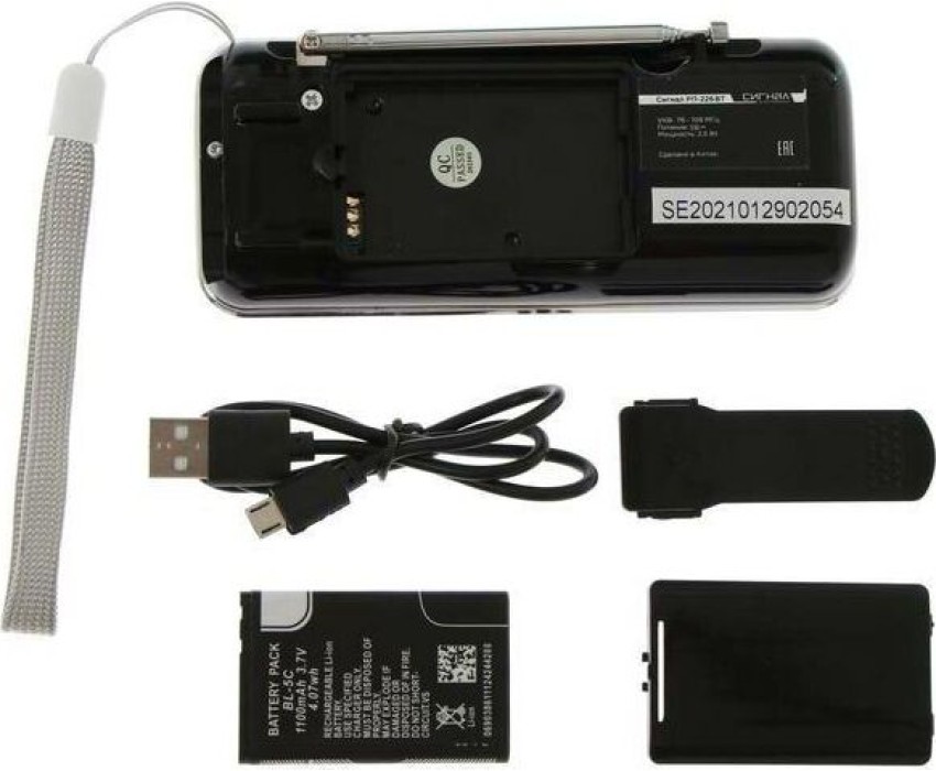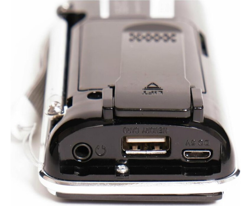 "Тип тюнера: цифровой Диапазоны: УКВ/СВ/КВ Частоты для каждого диапазона: УКВ (64-108МГц) / СВ (522-1620КГц) / КВ (5,8-22,0 МГц) Автонастройка в FM диапазоне: есть, 30 станции Кол-во динамиков: 1шт, монозвучание Мощность динамиков: 40mm/4 /3W Питание: 5V Батарейки: нет Аккумулятор: внешний, тип BL-5C, 1100мА/ч, 1,5ч Размер: 138x33x58мм"