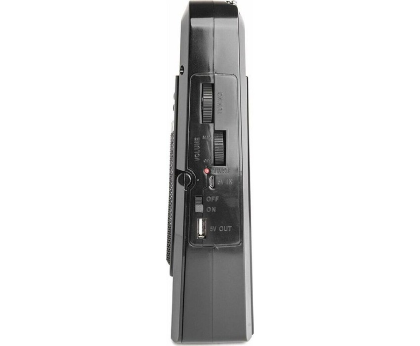 "УКВ: 88-108МГц СВ: 530-1600КГц КВ: 8-16МГц Мощность динамика: 1,5Вт Питание: Напряжение: 220В/50Гц Батарейки: R20*2 (не в компл.) Аккумулятор: встроенный акб 18650 (1200мА) Размер: 175*60*230мм Вес: 0,86кг ОСОБЕННОСТИ Встроенная солнечная панель: есть Фонарь: есть Воспроизведение с USB\TF: есть Возможность подзарядки мобильного устройства: есть"