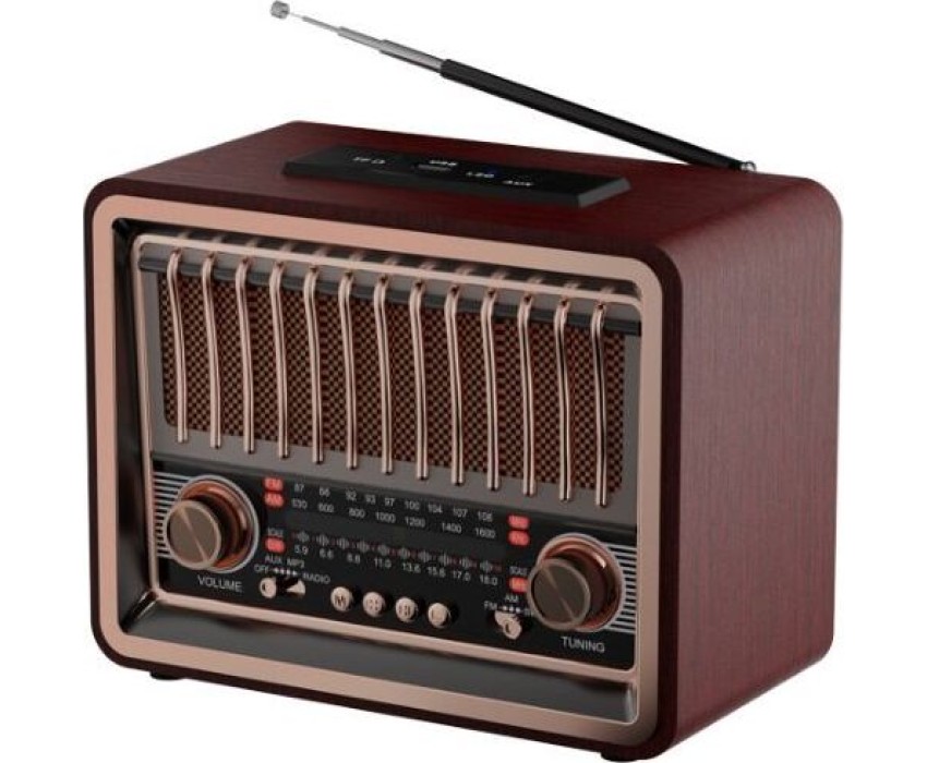 Радиоприемник в ретро-стиле, Bluetooth, 3 диапазона - FM/AM/SW, FM диапазон 87-108 МГц, AM диапазон 530-1600 kHz, SW диапазон 5.9-18.0 МГц, возможность воспроизведения с USB/TF (microSD) носителей, AUX IN, встроенная аккумуляторная батарея, питание: АС-220 В, 50 Гц, 4 Вт, 450 мА, DC – 6 В, телескопическая поворотная антенна, габаритные размеры - 101 х198 х149 мм.