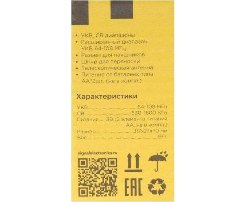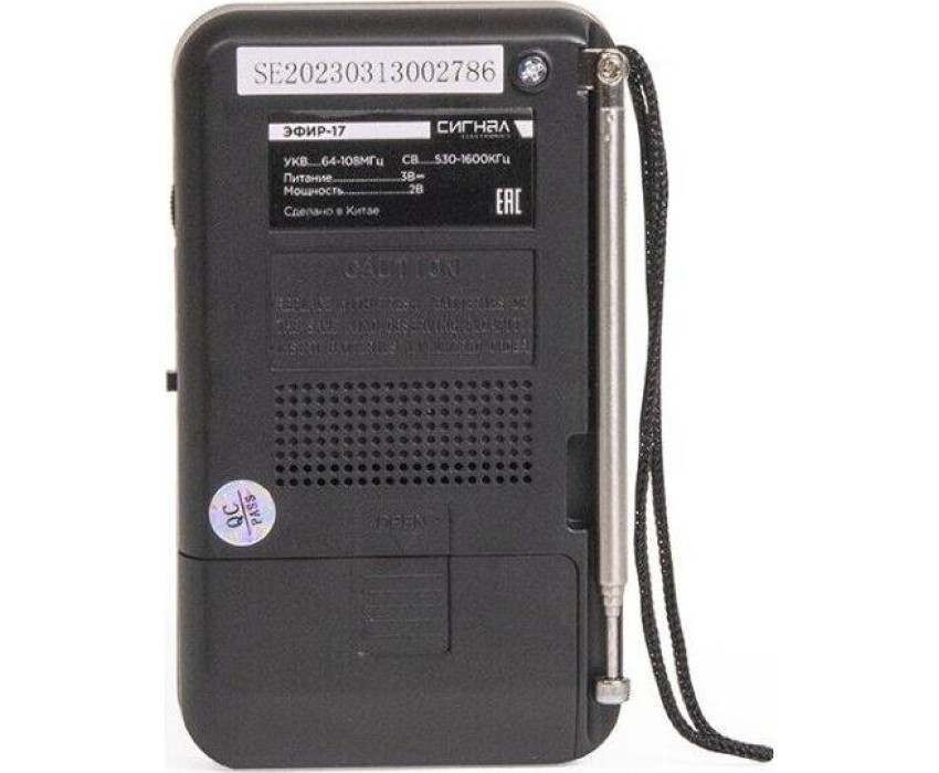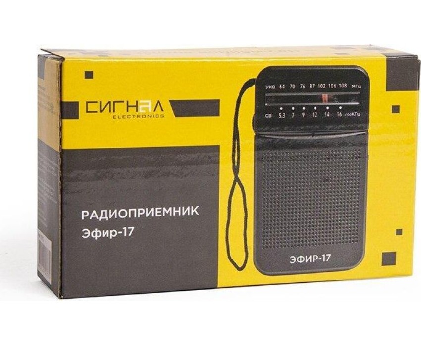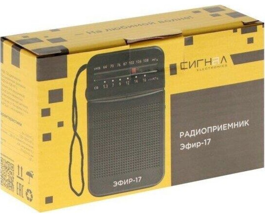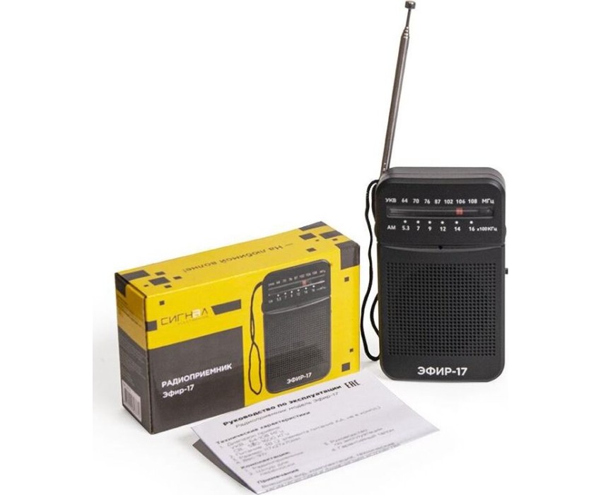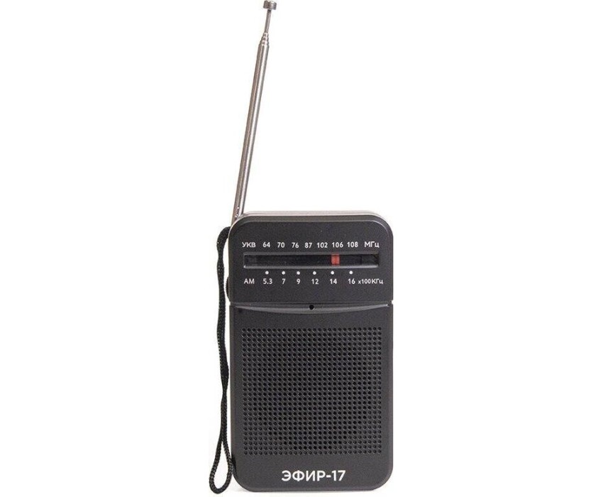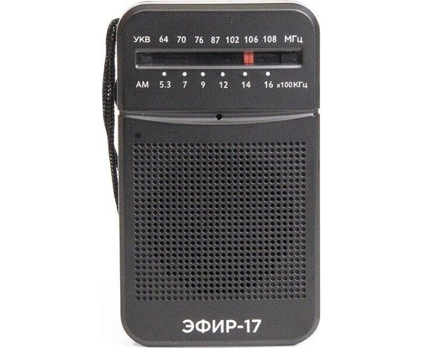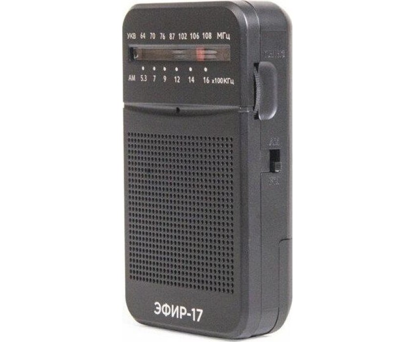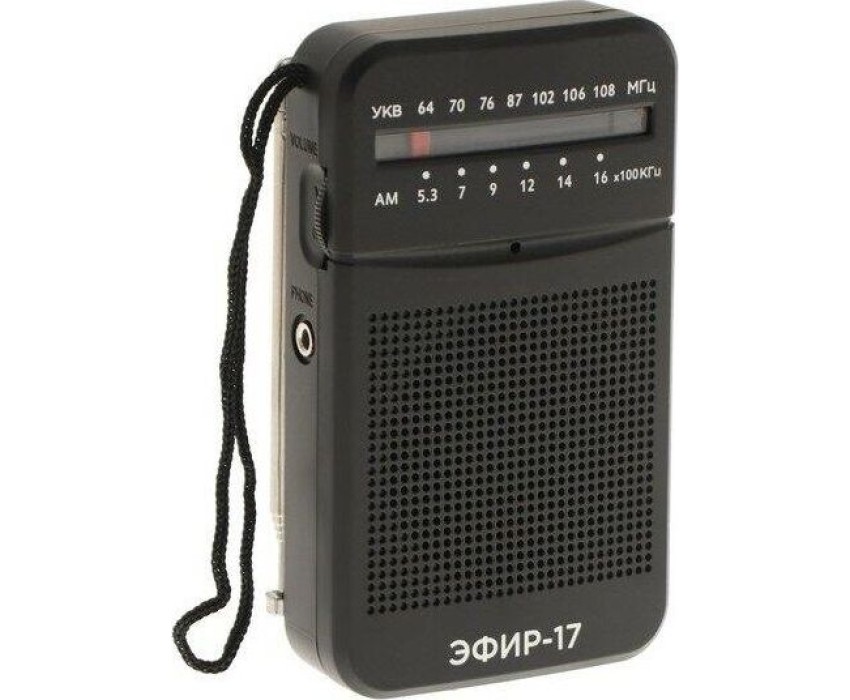Эфир-17 – это компактный радиоприемник из прочного пластика. Его особенно удобно брать с собой и использовать, как карманное радио. Он отлично подходит для дачников, рыбаков, охотников и для любителей отдыха на природе. У радио аналоговый тип тюнера, что позволяет точно настроить волну радиостанции. Он принимает сигнал в диапазонах УКВ/СВ, с частотой УКВ (64-108МГц) / СВ (530-1600КГц). Мощность динамика 3Вт. Для тех, кто любит наслаждаться музыкой в одиночку - есть разъем для подключения наушников. Работает Эфир-17 от 2 батареек АА. Товар сертифицирован, гарантия 12 месяцев.